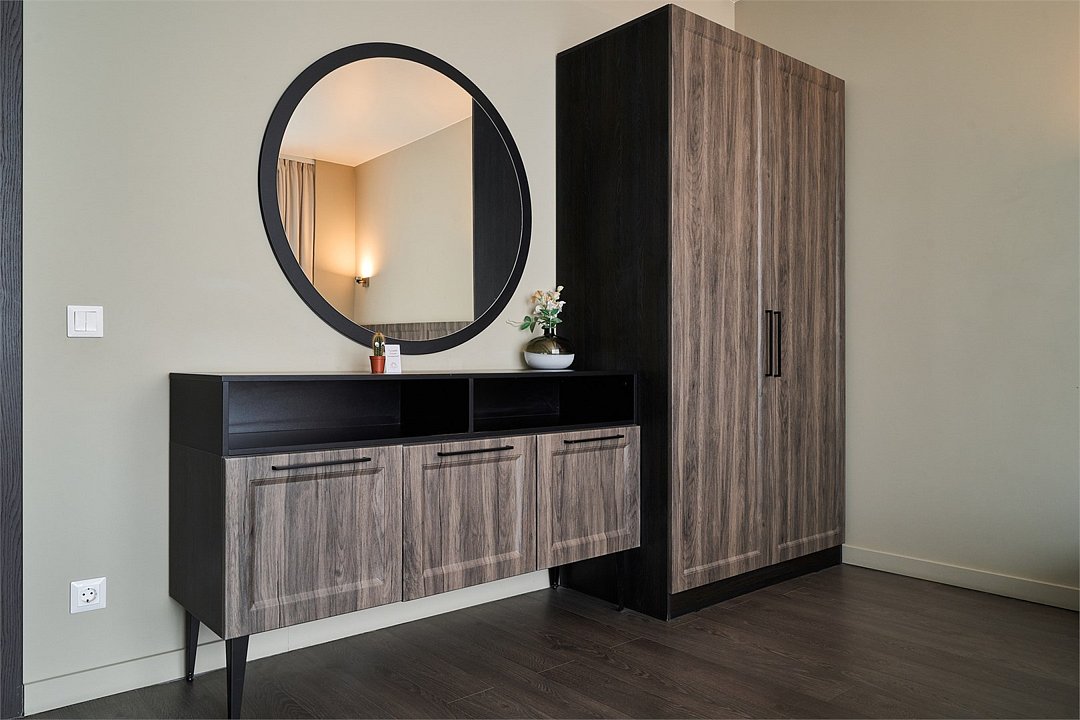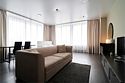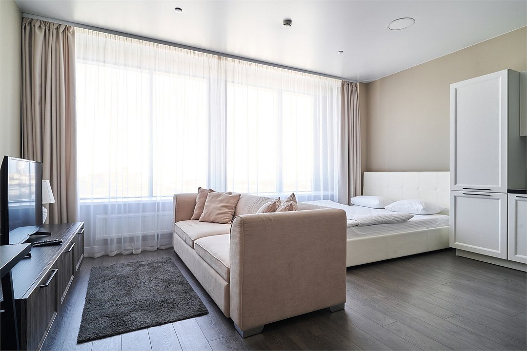 Для комфортного проживания: диван-кровать (150-190см) с анатомическим матрасом или двуспальная кровать 160-200 см, полноценная кухня с варочной поверхностью (не во всех номерах), вместительным холодильником, микроволновой печью, электрическим чайником и полным комплектом посуды для двух гостей, вместительные шкафы, телевизор с диагональю 42.5"(108см), кондиционер, стол, стулья, гладильная доска, утюг, стиральная машина(не во всех номерах). В ванной комнате: ванна или душевая кабина, фен, мини-парфюмерия, комплект полотенец, тапочки. При заезде взимается обеспечительный платеж в размере 2 000 рублей, который возвращается по выезду в течение 5 банковских дней, при соблюдении правил проживания.Услуги и удобства
