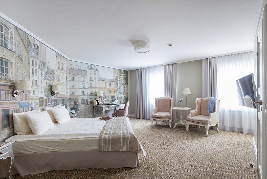 Номер Полулюкс являет собой гармоничное сочетание французской элегантности и утонченной представительности. Продуманность деталей стиля, особенный теплый свет, мягкие округлые линии в сочетании с классическим цветочным орнаментом подарят незабываемые ощущения бескомпромиссного комфорта в лучших традициях «старого света»Услуги и удобства