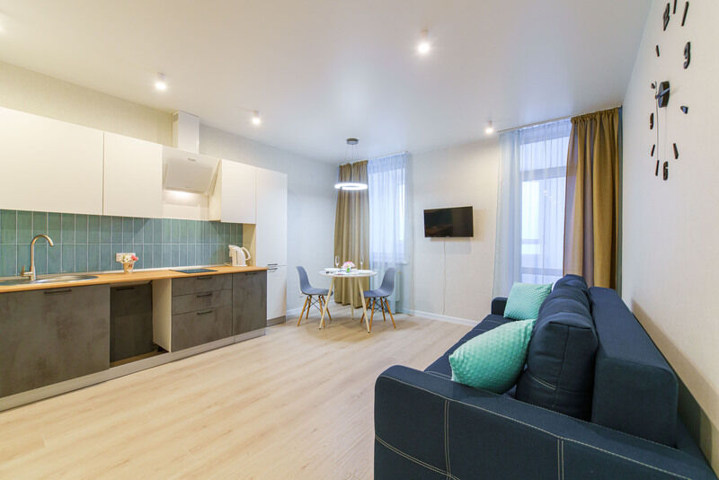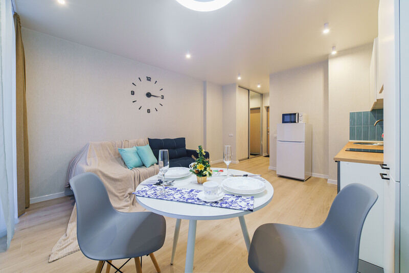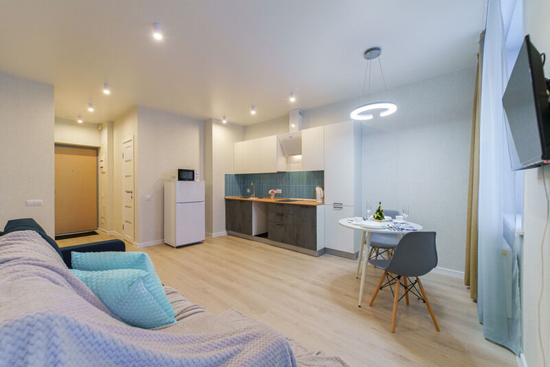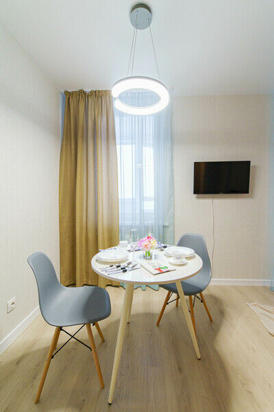 Апартаменты оснащены всем необходимым для комфортного отдыха : бытовая техника (стиральная машина, холодильник, телевизор, индукционная плитка, утюг, гладильная доска, сушилка для белья, микроволновую печь, чайник, фен для волос. Удобная укомплектованная кухня с обеденной зоной, необходимой посудой для приготовления из нержавеющей стали для изысканного ужина. Двуспальный диван и раскладной диван (1 двуспальное место) с чистым постельным бельем для крепкого сна. В непосредственной близости находится ЖД вокзал - 5 минут пешком.