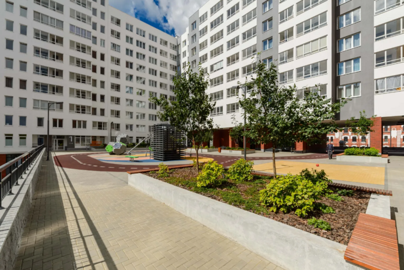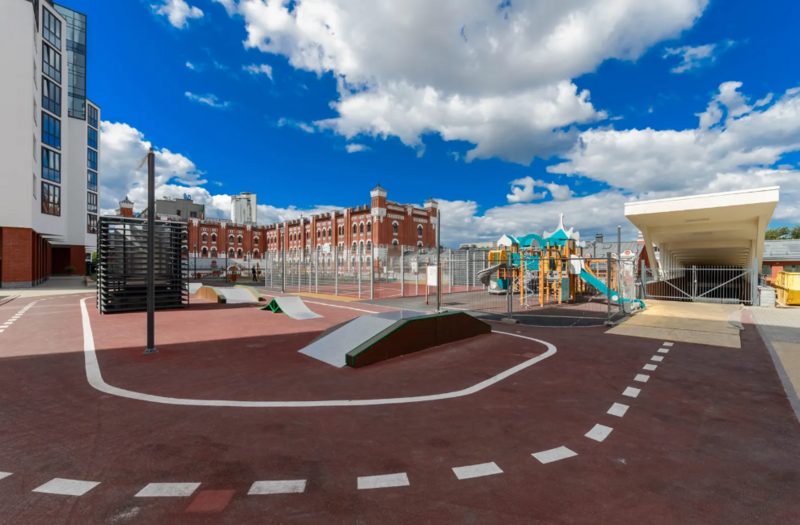 Жилой комплекс имеет общую дворовую территорию с детскими и спортивными площадками, зонами отдыха для всей семьи, в сочетании с коммерческими помещениями, расположенными в составе жилого квартала, образуют полностью самодостаточную экосистему для комфортной жизни.