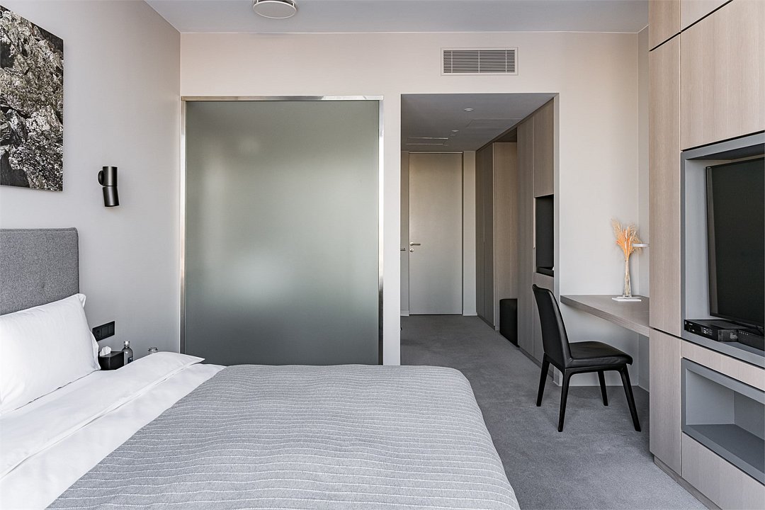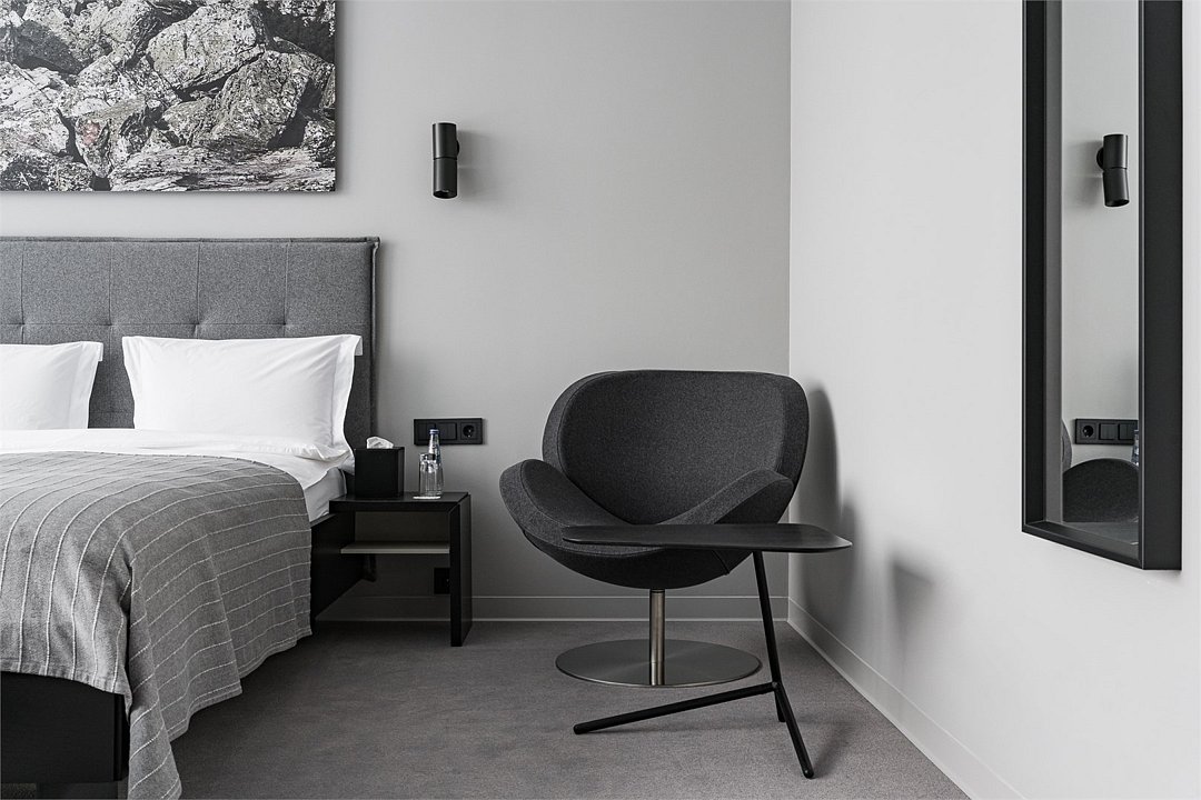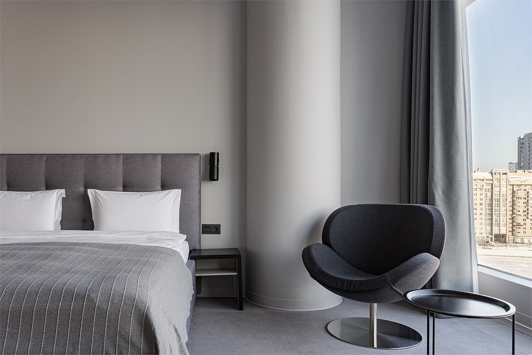 Номер площадью 30 м² с двуспальной кроватью, эргономичной рабочей зоной и ванной комнатой. Из окон открывается вид на городской пруд и конструктивистский комплекс «Динамо». В номере есть ЖК-телевизор, мини-холодильник с платным и снеками, кофемашина и чайник. Бесплатный Wi-Fi. Отель предлагает в номере гостям наборы гипоаллергенной косметики Naturals Remedies.Услуги и удобства