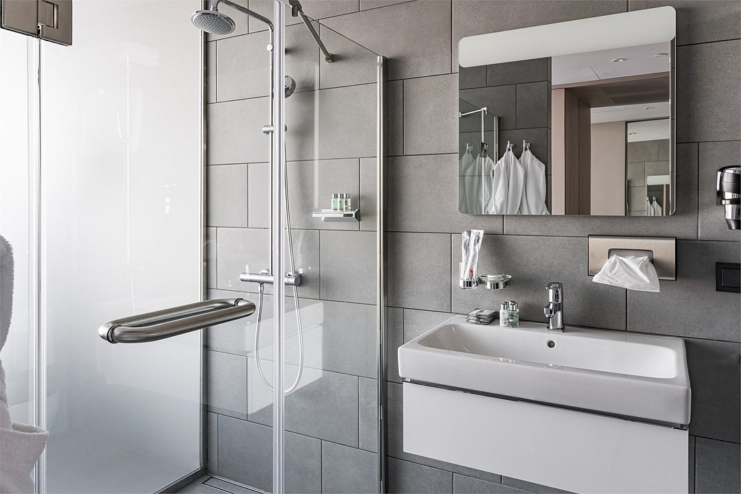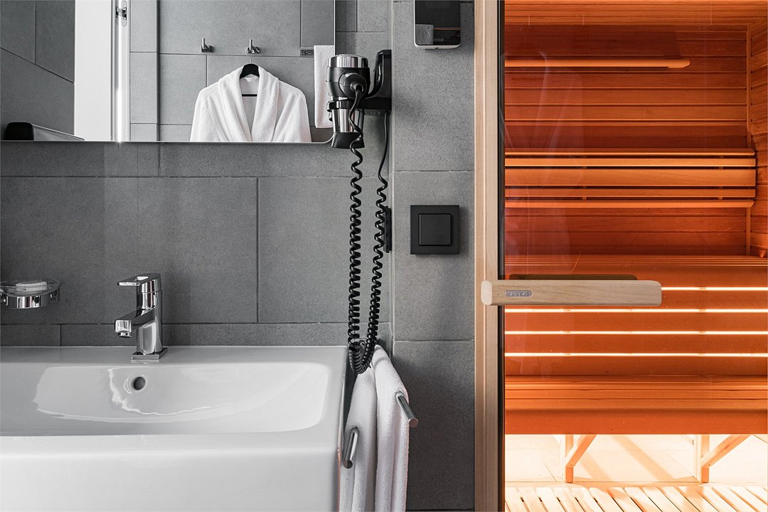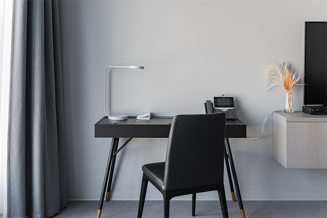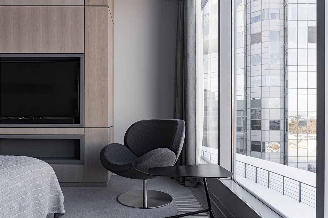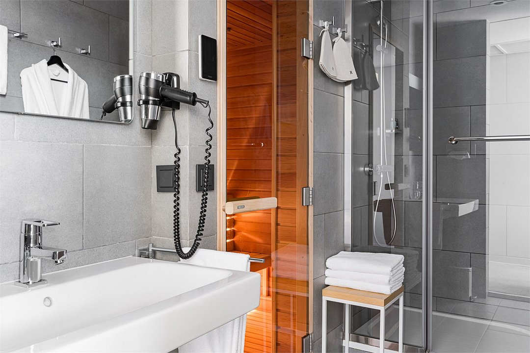 Номер площадью 35 м² с двуспальной кроватью, эргономичной рабочей зоной и компактной сауной, встроенной в ванную комнату. Из окон открывается вид на пруд и городской ландшафт. В номере есть ЖК-телевизор, мини-холодильник с баром и снеками, кофемашина и чайник. Бесплатный Wi-Fi. Отель предлагает в номере гостям наборы гипоаллергенной косметики Naturals Remedies.Услуги и удобства