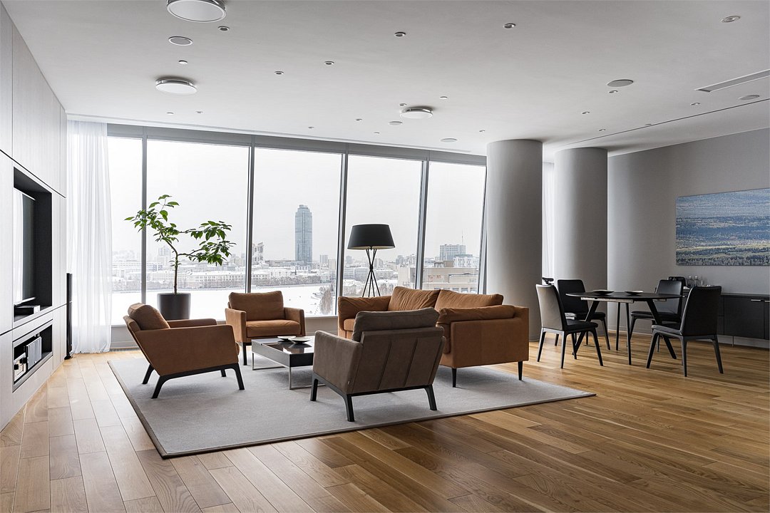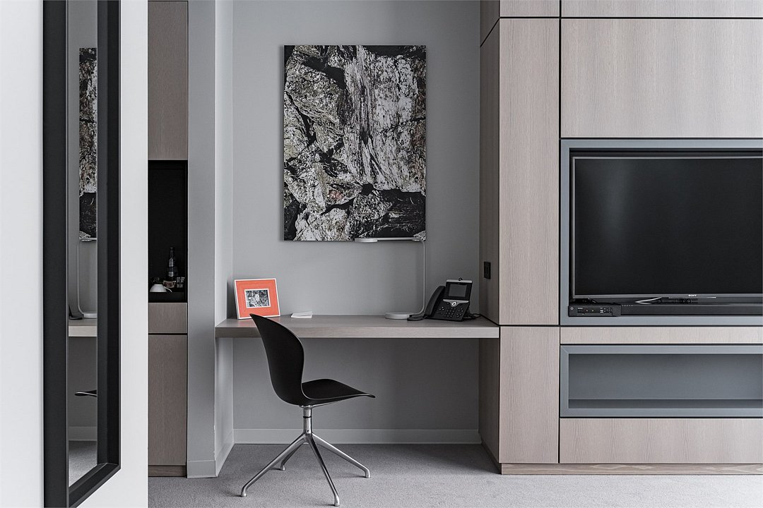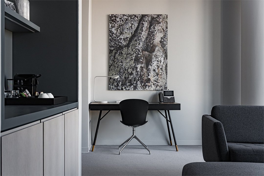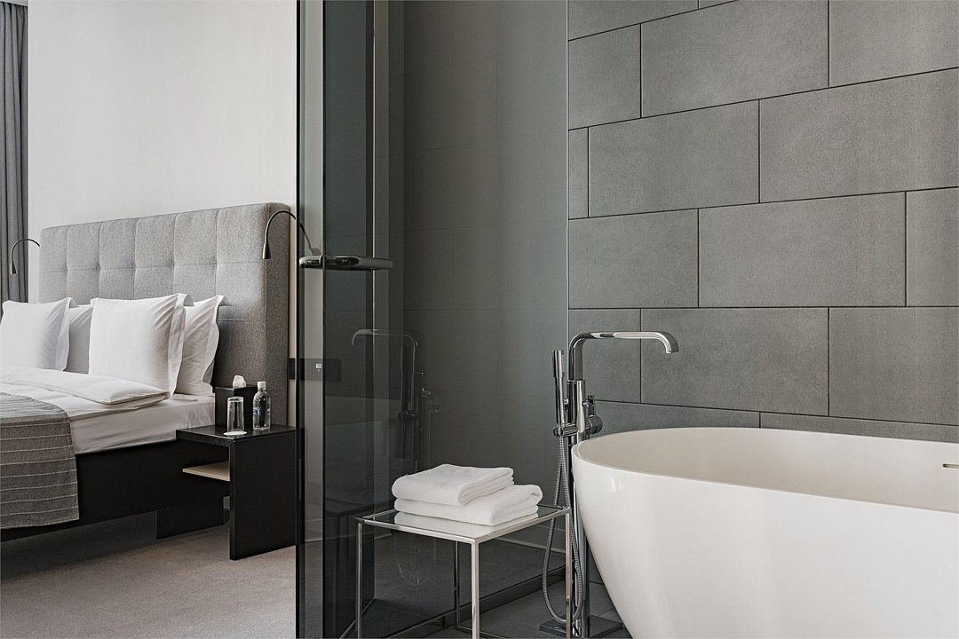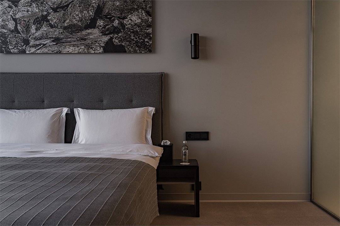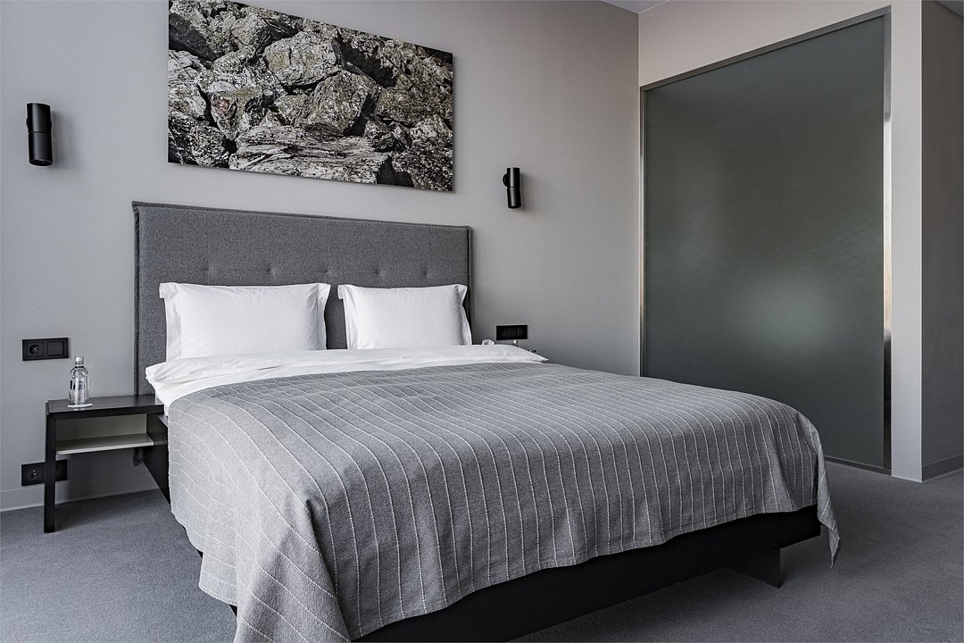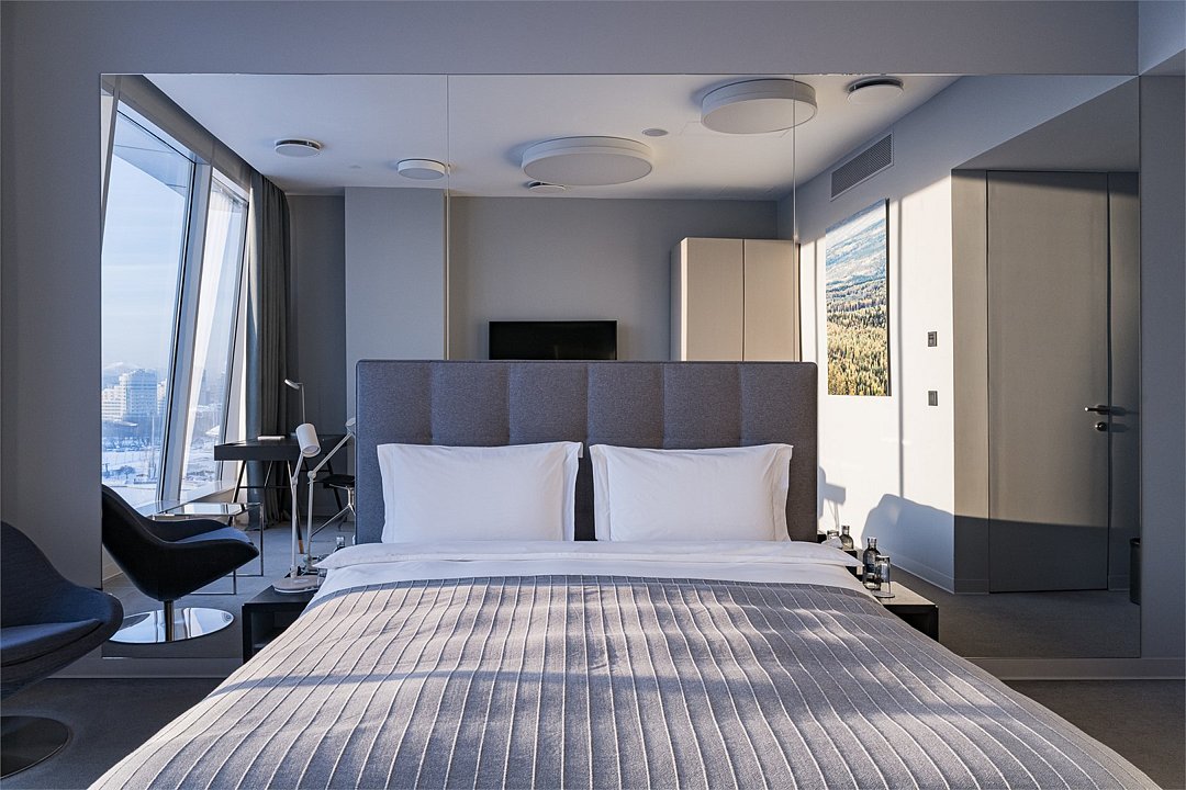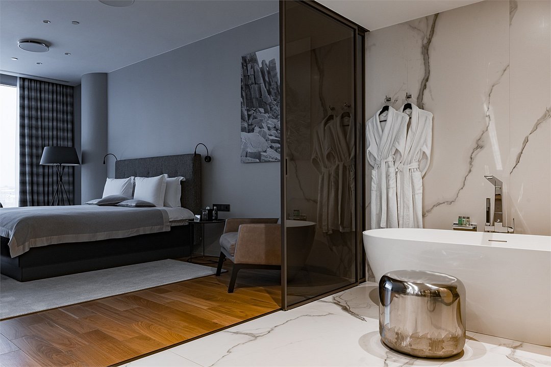 Номер площадью 70 м² с гостиной и спальной зонами. Внутри организовано удобное рабочее место. Ванная комната отделена от общего пространства стеклянной стеной. Также в номере есть гостевой санузел. Из панорамных окон открывается вид на Екатеринбург-Сити. В номере есть Led телевизор, мини-холодильник с баром и снеками, кофемашина и чайник. Бесплатный Wi-Fi. Отель предлагает наборы гипоаллергенной косметики Naturals Remedies. Также в распоряжении гостей мини-библиотека по интересам.Услуги и удобства