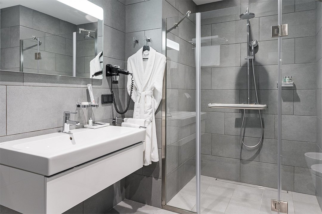 Номер площадью 30 м² с двуспальной кроватью и эргономичной рабочей зоной. Ванная комната отделена от спальни матовой стеклянной стеной. Из окон открывается вид на мост, реку Исеть и Екатеринбург-Сити. В номере есть ЖК-телевизор, мини-холодильник с баром и снеками, кофемашина и чайник. Бесплатный Wi-Fi. Отель предлагает в номере гостям наборы гипоаллергенной косметики Naturals Remedies.Услуги и удобства