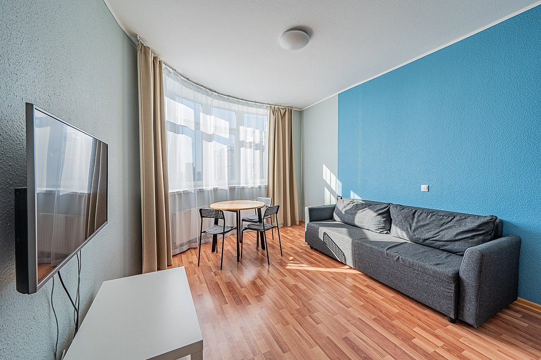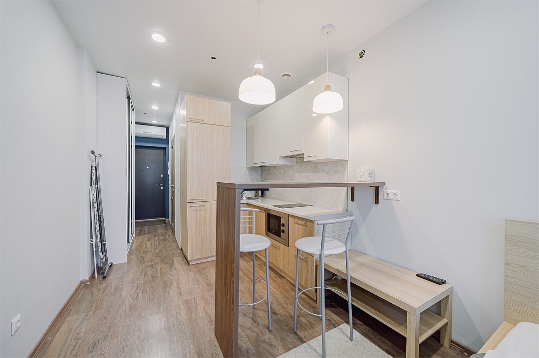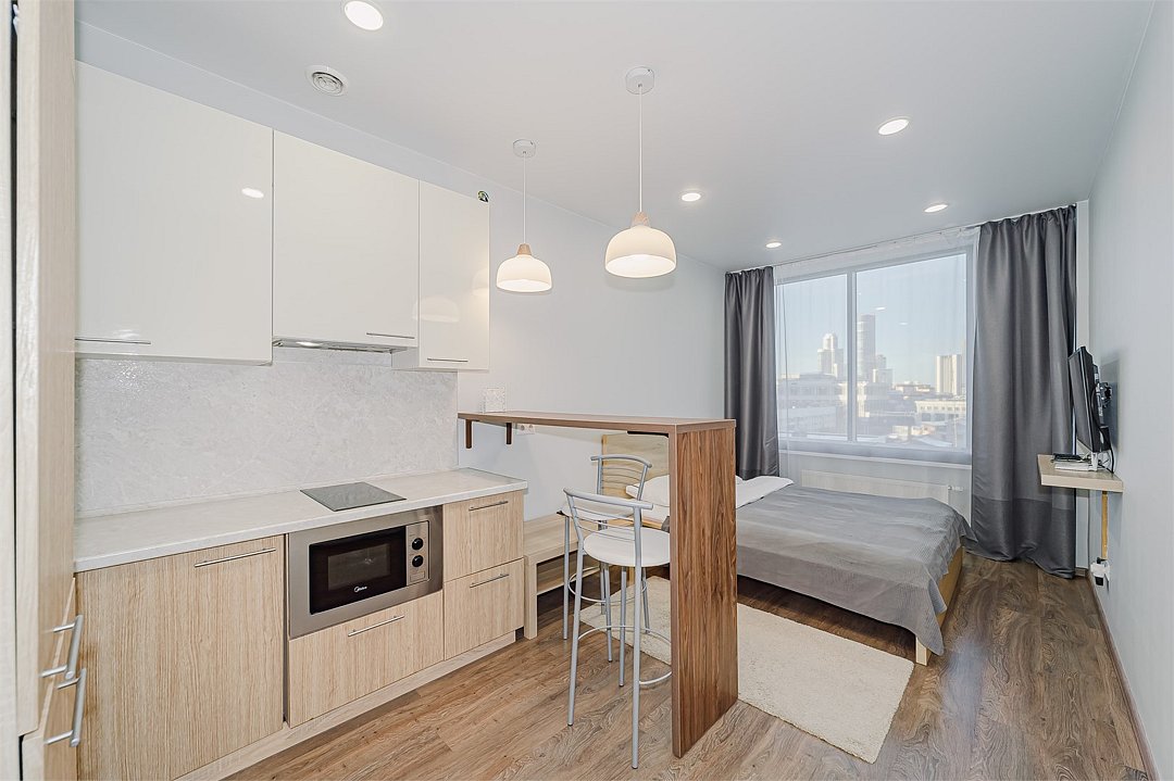 Квартира-студия в ЖК «Солнечный остров» на 25 этаже ! Вашему вниманию предлагается уютная студия в жилого комплекса «Солнечный остров» в самом сердце Екатеринбурга на высоте 25 этажа с панорамным видом на весь город. Это идеальное решение для гостей любого статуса — будь то частные лица или корпоративные клиенты, кому необходима комфортная и функциональная квартира на короткий или длительный срок проживания. Преимущества квартиры - Удобное расположение рядом с основными транспортными узлами и достопримечательностями города. - Круглосуточная охрана комплекса и наличие бесплатной парковки. - Детская и спортивная площадки на территории комплекса. - Магазины и рестораны на 1 этаже жилого дома. Комфорт - Качественный ремонт и современная мебель - Двуспальная кровать и удобный диван-кровать - Шкаф-купе с зеркалом и вешалками - Современный телевизор с TV-приставкой - Все коммуникации включены в арендную плату Оснащенность кухни - Холодильник и варочная поверхность - Полностью укомплектованная посуда - Микроволновая печь, электрочайник и кухонные принадлежности - Система вентиляции и удобная рабочая зона Дополнительные удобства: - Просторный коридор оборудован гардеробом - Санузел оснащён современной сантехникой, стиральной машиной и феном - Утюг, гладильная и сушильная доски обеспечивают удобство быта - Кондиционер обеспечивает комфортный микроклимат круглый год - Теплые полы в ванной комнате Сервис включен бесплатно - Телевидение и высокоскоростной Wi-Fi - Чистое постельное бельё, полотенца, туалетные принадлежности и тапочки - Чай, кофе и сахар включены в проживание - По запросу предоставляем услугу генеральной уборки (бронирование от 10 суток). - Для корпоративных клиентов предоставляется полный пакет отчётных документов: договор, чек, акт выполненных работ и справка о проживании. Условия проживания - Заселяются лица старше 21 года. - Необходимо наличие паспорта. - Курение разрешено только на специально отведённом балконе подъезда. - Проживание с домашними питомцами недопустимо. - Возможен ранний заезд и поздний выезд по предварительной договоренности. - Обеспечительный депозит составляет 2000 рублей, который возвращают в полном объёме при выезде и отсутствии нарушений условий проживания . Online - бронирование абсолютно безопасно для Вас . Оставьте заявку прямо сейчас и получите лучшую цену за сутки!Услуги и удобства