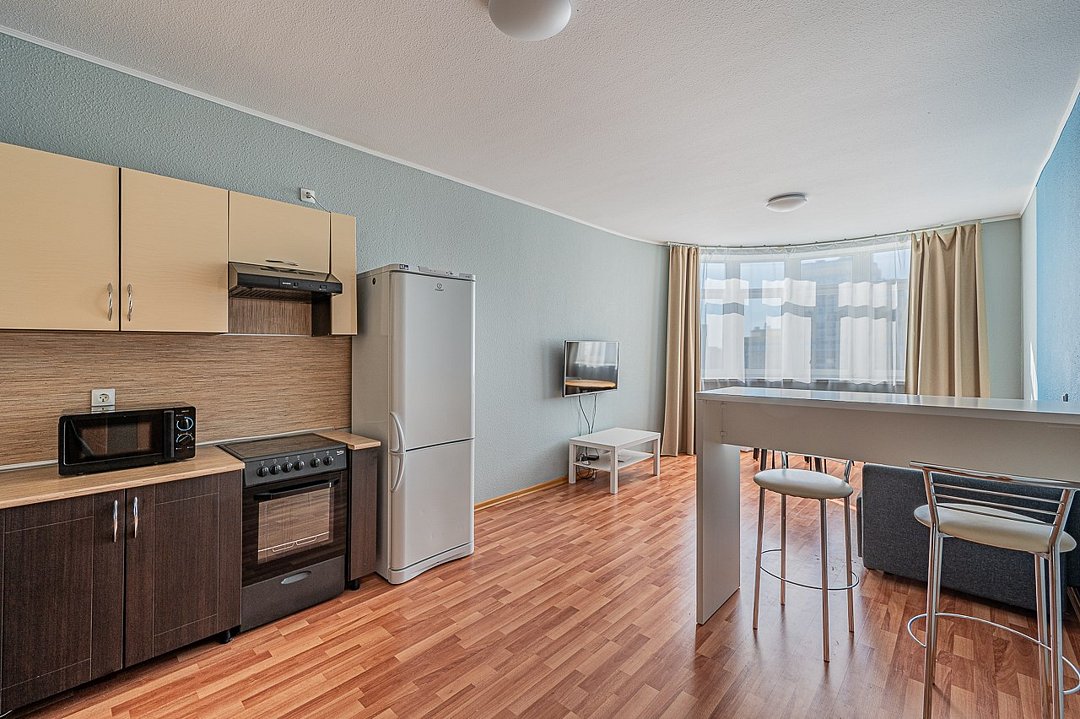 Квартира-студия в ЖК «Солнечный остров» на 21 этаже ! Вашему вниманию предлагается уютная студия в жилого комплекса «Солнечный остров» в самом сердце Екатеринбурга на высоте 21 этажа с панорамным видом на весь город. Это идеальное решение для гостей любого статуса — будь то частные лица или корпоративные клиенты, кому необходима комфортная и функциональная квартира на короткий или длительный срок проживания. Преимущества квартиры - Удобное расположение рядом с основными транспортными узлами и достопримечательностями города. - Круглосуточная охрана комплекса и наличие бесплатной парковки. - Детская и спортивная площадки на территории комплекса. - Магазины и рестораны на 1 этаже жилого дома. Комфорт - Качественный ремонт и современная мебель - Двуспальная кровать и удобный диван-кровать - Шкаф-купе с зеркалом и вешалками - Современный телевизор с TV-приставкой - Все коммуникации включены в арендную плату Оснащенность кухни - Холодильник и варочная поверхность - Полностью укомплектованная посуда - Микроволновая печь, электрочайник и кухонные принадлежности - Система вентиляции и удобная рабочая зона Дополнительные удобства: - Просторный коридор оборудован гардеробом - Санузел оснащён современной сантехникой, стиральной машиной и феном - Утюг, гладильная и сушильная доски обеспечивают удобство быта - Кондиционер обеспечивает комфортный микроклимат круглый год - Теплые полы в ванной комнате Сервис включен бесплатно - Телевидение и высокоскоростной Wi-Fi - Чистое постельное бельё, полотенца, туалетные принадлежности и тапочки - Чай, кофе и сахар включены в проживание - По запросу предоставляем услугу генеральной уборки (бронирование от 10 суток). - Для корпоративных клиентов предоставляется полный пакет отчётных документов: договор, чек, акт выполненных работ и справка о проживании. Условия проживания - Заселяются лица старше 21 года. - Необходимо наличие паспорта. - Курение разрешено только на специально отведённом балконе подъезда. - Проживание с домашними питомцами недопустимо. - Возможен ранний заезд и поздний выезд по предварительной договоренности. - Обеспечительный депозит составляет 2000 рублей, который возвращают в полном объёме при выезде и отсутствии нарушений условий проживания . Online- бронирование абсолютно безопасно для Вас . Оставьте заявку прямо сейчас и получите лучшую цену за сутки!Услуги и удобства