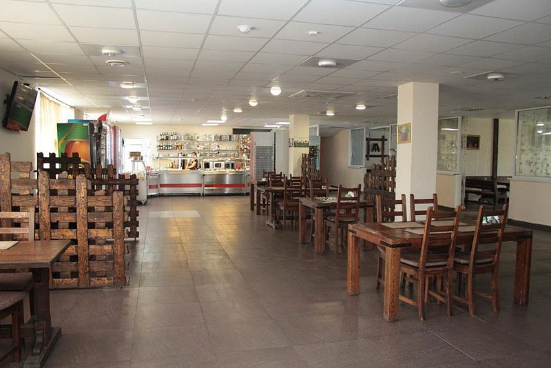 Большой выбор блюд русской и восточной кухни, умеренные цены, автостоянка рядом с отелем. Главным преимуществом является вместимость, может принять до 100 гостей. идеальное место для проведения свадеб, веселых вечеринок, деловых встреч, банкетов.