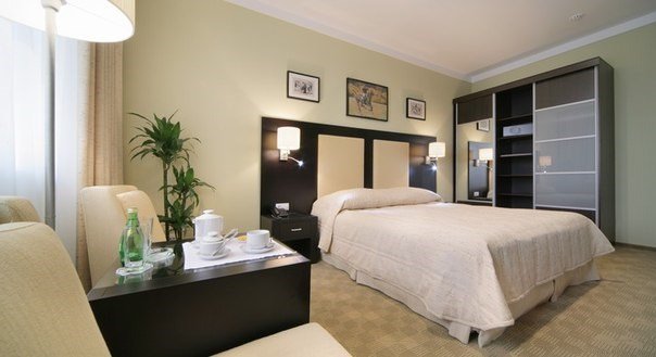 Номер «Люкс» - это номер площадью 50 кв.м. с расположенными в отдельных помещениях спальней и рабочим кабинетом.Услуги и удобства
