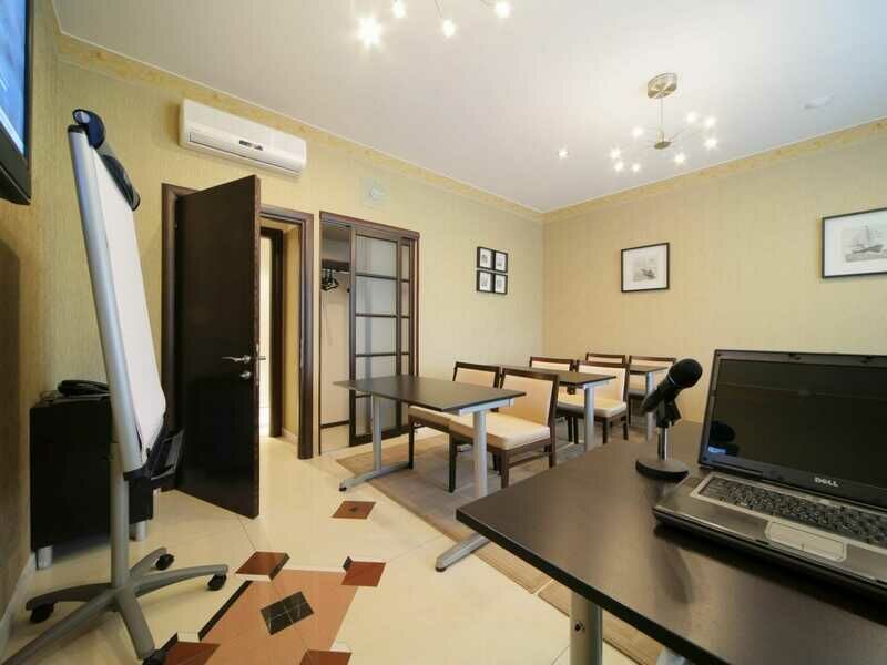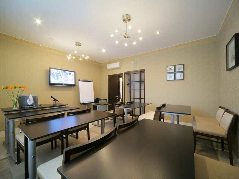 Имеется все необходимое оборудование: мультимедийный проектор, экран, музыкальный центр, микрофон, ноутбук, флипчарт, система звукоусиления и светозатемнения. По пожеланию организаторов возможна организация фуршета, кофе-брейка, обеда, банкета. Предусмотрено место для курения и отдельный санузел.