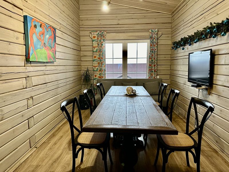 Дом из натурального дерева, расположен на участке 6 соток, общей площадью 118 м2, в нем есть всё необходимое для комфортного пребывания гостей.