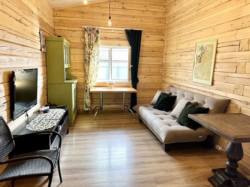 Дом из натурального дерева, расположен на участке 8 соток, общей площадью 81 м2, в нем есть всё необходимое для комфортного пребывания гостей.