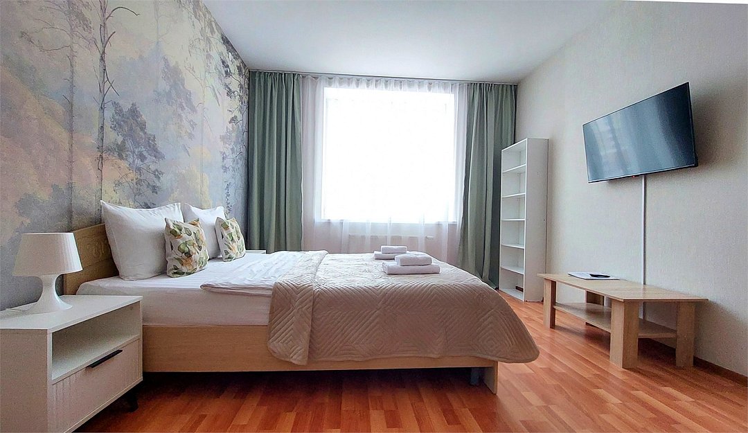телевизор, Wi-Fi, интернет, холодильник, фен, вентилятор, плита для приготовления пищи, микроволновая печь, утюг, ванная комната, ванна, санузел, банные полотенца, кровать «Queen size», гипоаллергенное белье, гладильная доска, ортопедический матрас, стулья, шкаф для одежды, кухня, чайный набор, набор посуды, стиральная машина, чайник, унитаз, раковина, отопление, вид на город, ламинат, стаканы, кухонная утварь, столовые приборы, стул, стол, туалетные средства, туалет, сушилка для белья, цифровое тв, диван-кровать, раскладной диван, телевизор с плоским экраном, шкаф-купе, телевизор со Smart TV, номер для некурящих, духовка, вешалки-плечики, бутилированная вода, затемняющая штораВ квартире
