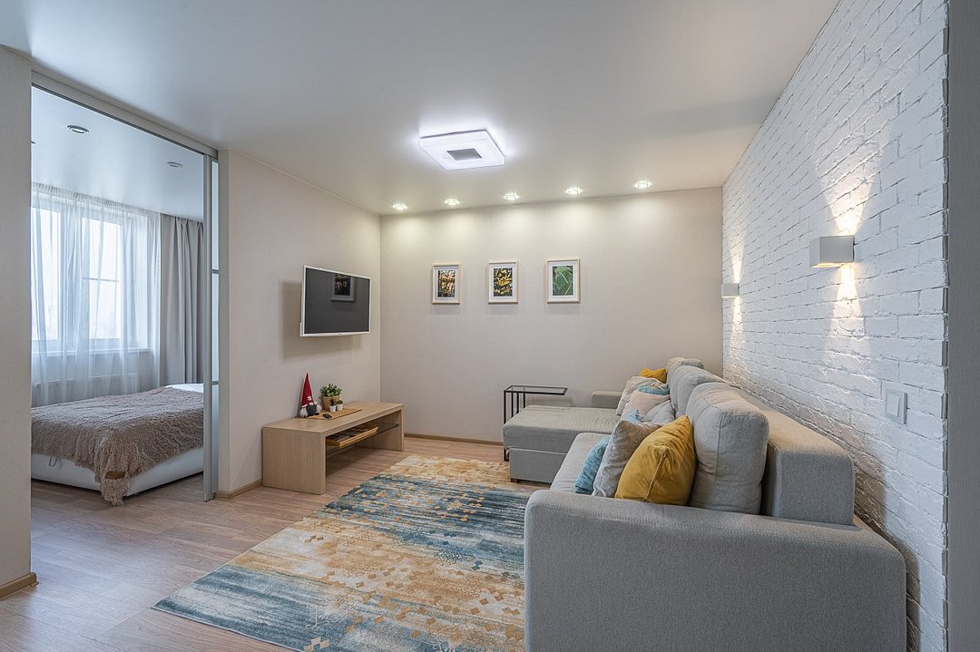 Стильный дизайнерский ремонт, выполненный с использованием качественных отделочных материалов, не оставляет гостей равнодушными. Апартаменты оснащены всей необходимой мебелью и техникой. Доступны бесплатный Wi-Fi и интерактивное TV.