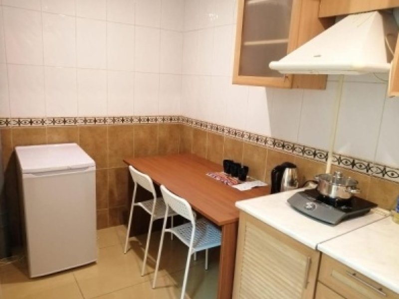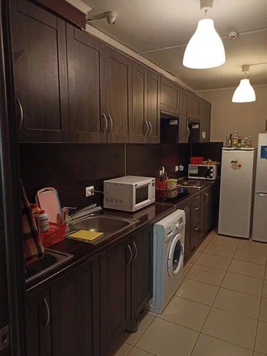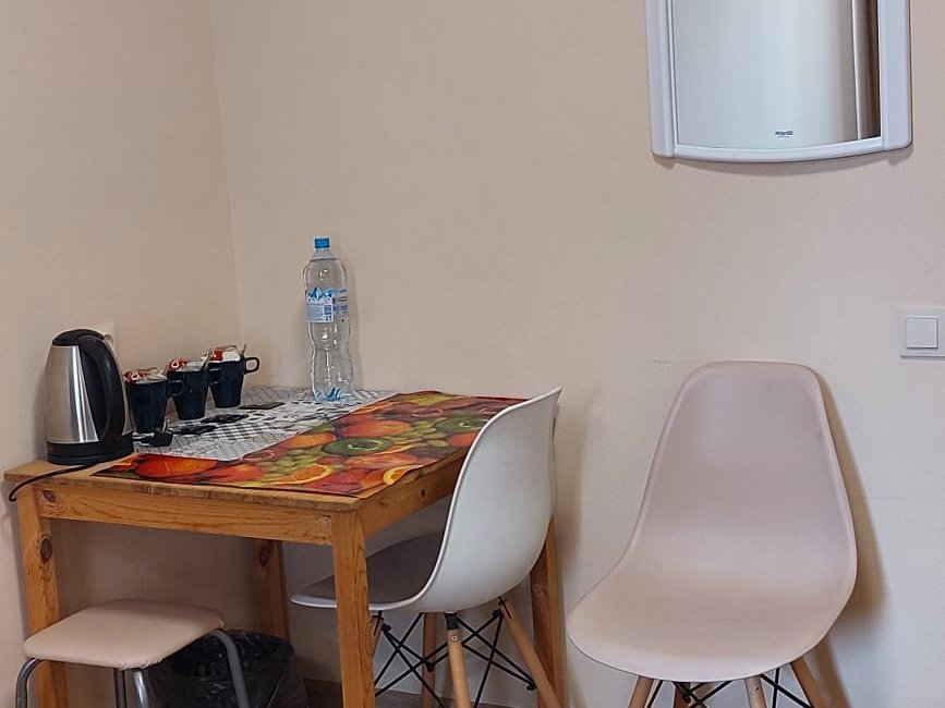 Комфортный семейный трехместный номер с собственной ванной комнатой и мини-кухней. В номере одна двуспальная и одна односпальная кровати, душ, туалет, ТВ, кондиционер. На кухне имеется всё необходимое для приготовления пищи: холодильник, микроволновка, чайник, плитка и посуда.В номере