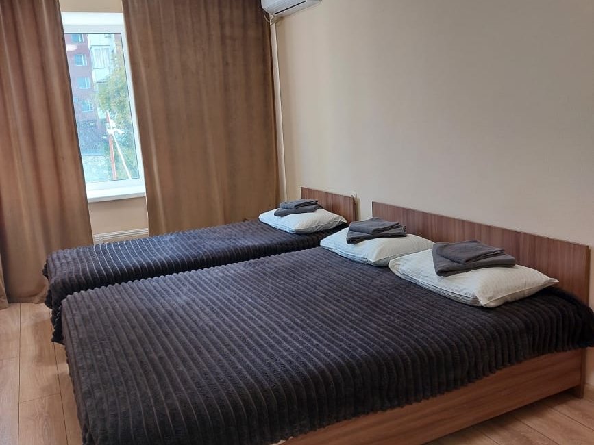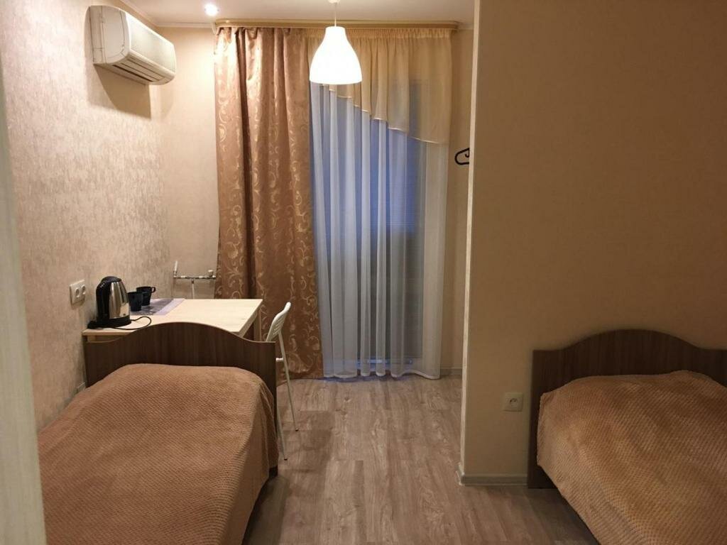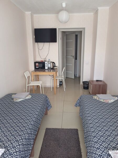 Комфортный номер с двумя раздельными кроватями и собственной ванной комнатой. В номере две односпальные кровати, санузел, ТВ, чайник, микроволновка, кондиционер.В номере