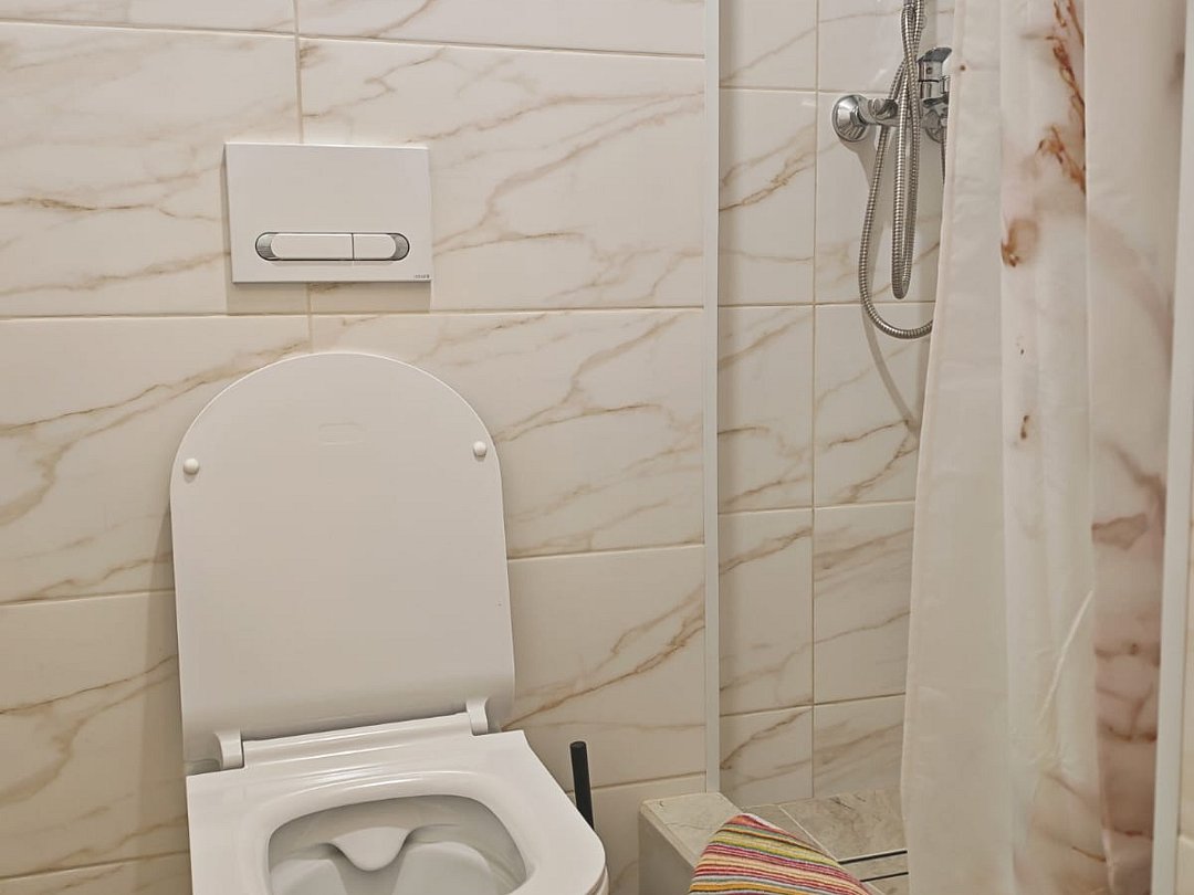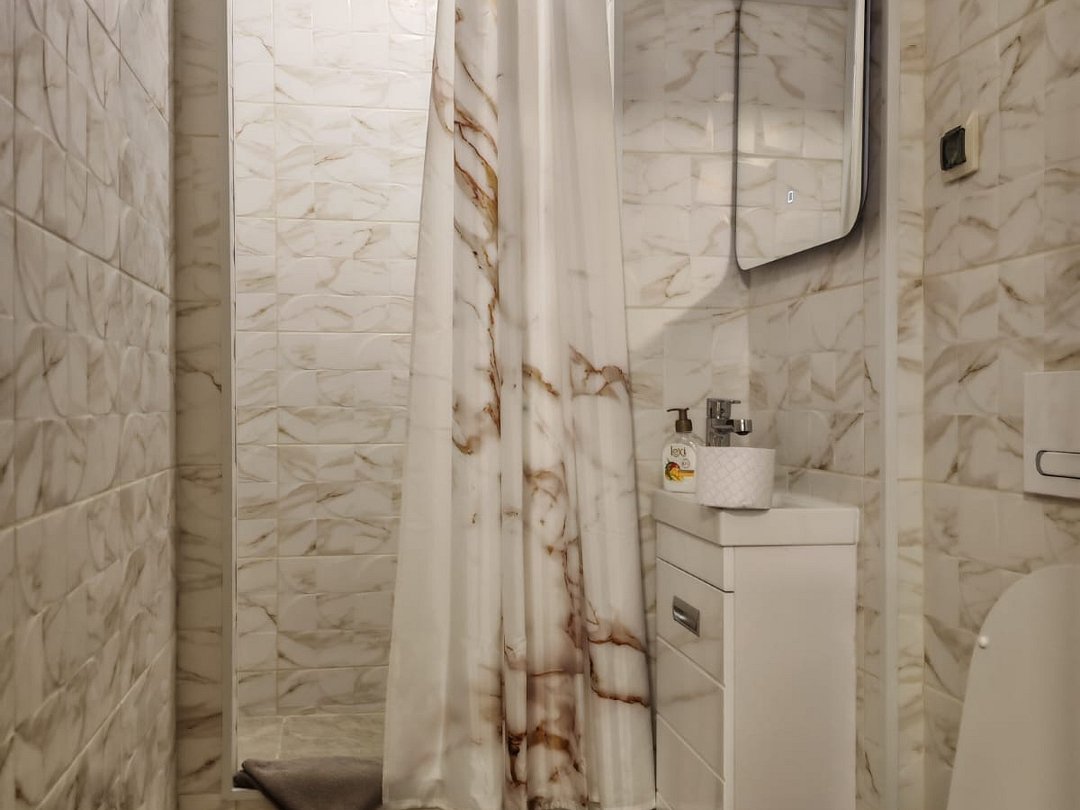 Комфортный номер с двуспальной кроватью и собственной ванной комнатой. В номере одна двуспальная кровать 140*200см, душ и туалет, ТВ, чайник, микроволновка.В номере