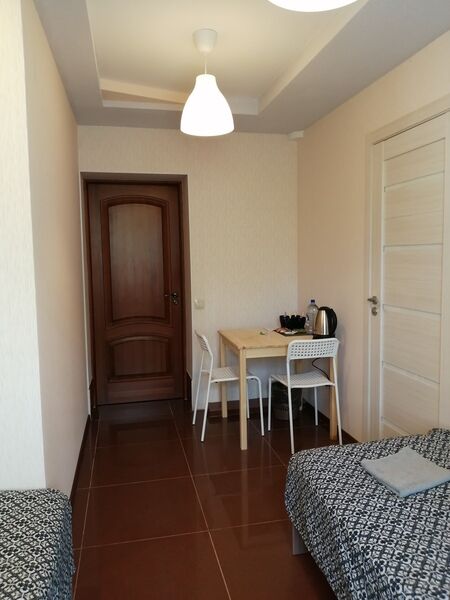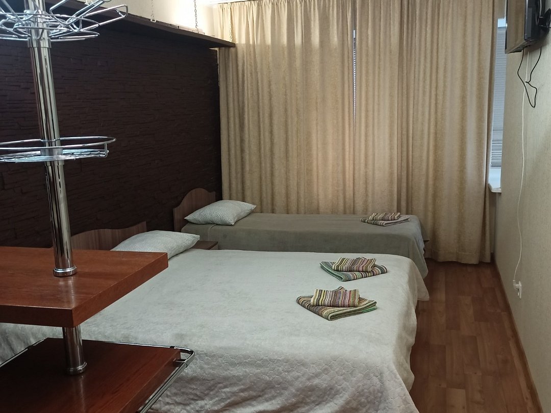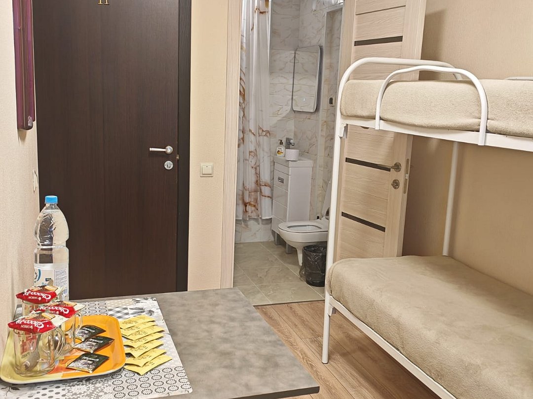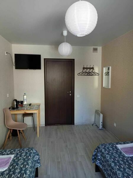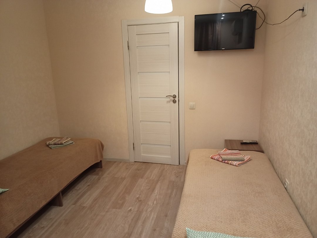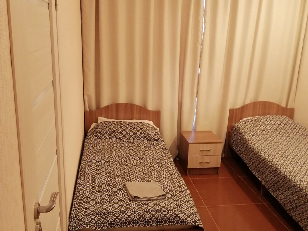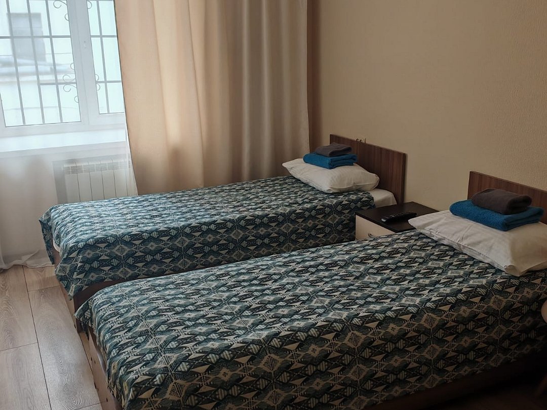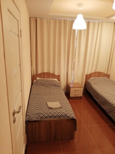 Двухместный номер с раздельными кроватями и общей ванной комнатой. В номере две односпальные кровати, телевизор, чайник. Душевые и туалетные комнаты расположены на этаже. Стойка регистрации работает с 9:00 до 21:00В номере