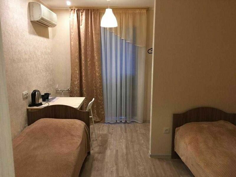 Небольшой уютный двухместный номер с собственной ванной комнатой и глухим окном. В номере две односпальные кровати, ТВ, чайник, микроволновая печь, кондиционер. Окно в номере не открывается.В номере