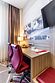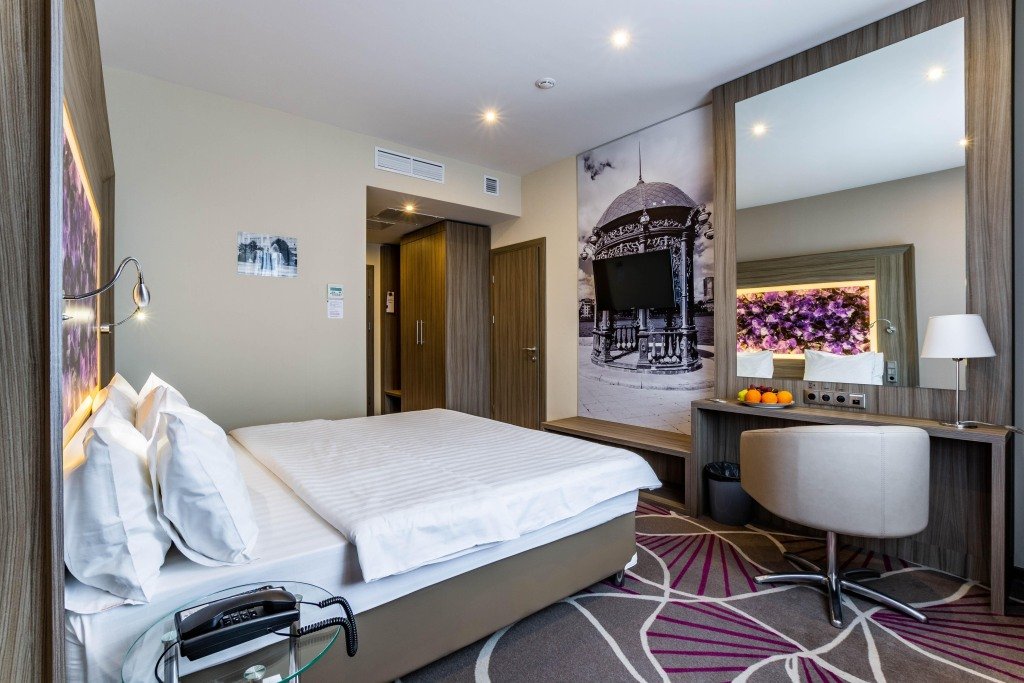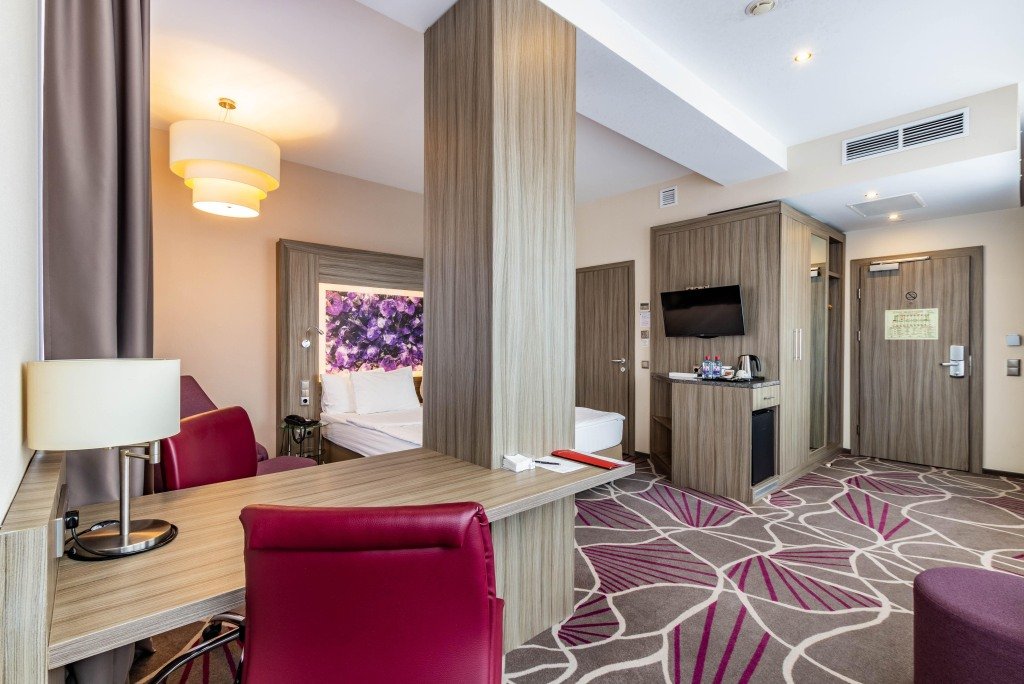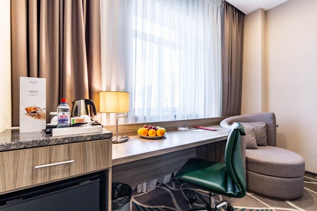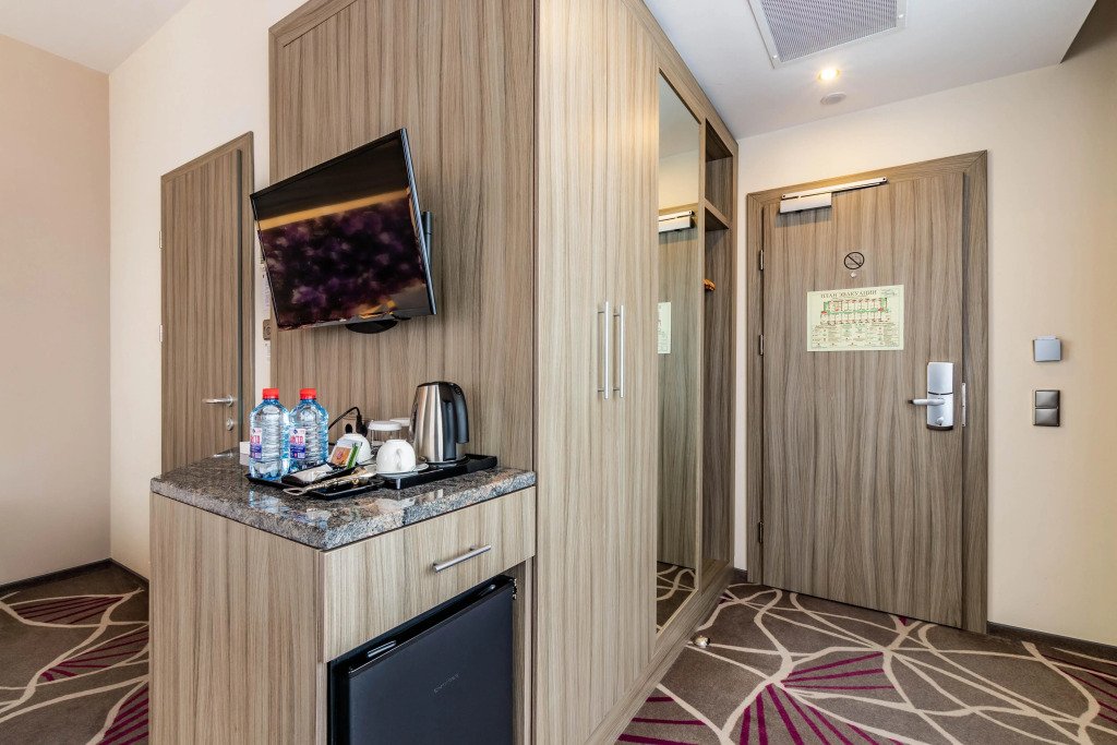 В номере вас будут ждать телевизор, мини-бар и халат. Перечисленные услуги есть не во всех номерах.