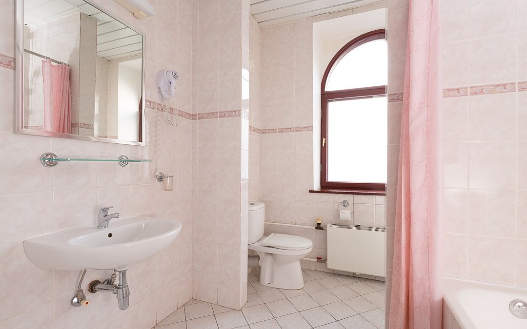 - с ванной или душевой кабиной