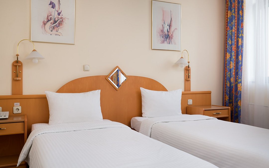 Номер с двумя односпальными кроватями (90 см х 200 см). Площадь номера - 22 м2. В ванной комнате: душевая кабина, туалет, фен, комплект полотенец, косметические принадлежности. Проживание детей до 7 лет включено в стоимость (без предоставления отдельного спального места).Услуги и удобства