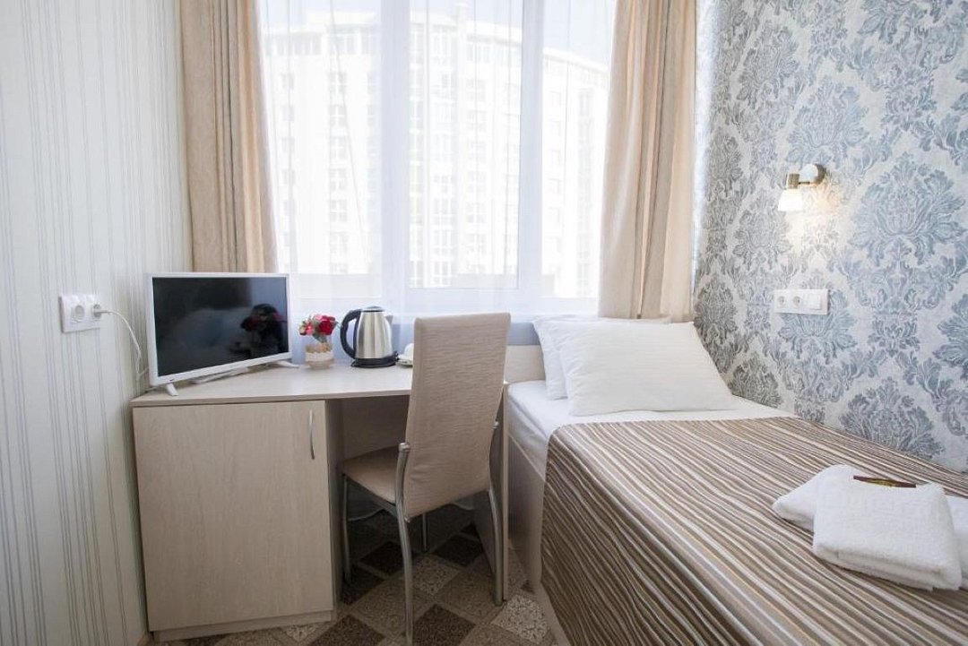 телевизор, Wi-Fi, холодильник, кондиционер, светильник, настольные лампы, фен, микроволновая печь, утюг, обогреватель, ванная комната, душевая кабина, санузел, банные полотенца, гигиенические средства, односпальная кровать, гладильная доска, шкаф для одежды, вешалки, зеркало, чайный набор, обслуживание номеров, чайник, унитаз, раковина, питьевая вода, ковровое покрытие, отопление, вид на город, кулер на этаже, стаканы, стул, стол, туалетные средства, цифровое тв, номер для некурящих, вешалки-плечики, без питомцевВ номере