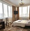 два телевизора, Wi-Fi, холодильник, кондиционер, светильник, фен, микроволновая печь, утюг, ванная комната, душевая кабина, банные полотенца, гигиенические средства, двуспальная кровать, односпальная кровать, гладильная доска, стулья, шкаф для одежды, вешалки, журнальный столик, зеркало, две комнаты, чайный набор, чайник, унитаз, раковина, ковровое покрытие, отопление, вид на город, стаканы, кофейный столик, стол, туалетные средства, цифровое тв, рабочий стол, уборка номера, вешалки-плечики, бутилированная вода, мыло, зеркало в полный рост, без питомцевВ номере