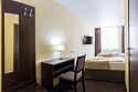Стильный и современный однокомнатный номер. В номере две односпальных кровати с ортопедическими матрасами, светонепроницаемые шторы, телевизор, рабочий стол, настольная лампа, санузел с косметическими средствами, фен, тапочки.Услуги и удобства