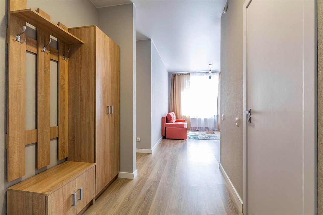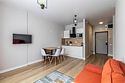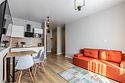 В апартаментах имеется двуспальная кровать с ортопедическим матрасом, диван, шкаф, телевизор, утюг, гладильная доска и Wi-Fi. В ванной комнате есть чистые полотенца, средства гигиены и стиральная машина. Кухня оснащена необходимой бытовой техникой и посудой для самостоятельного приготовления пищи.