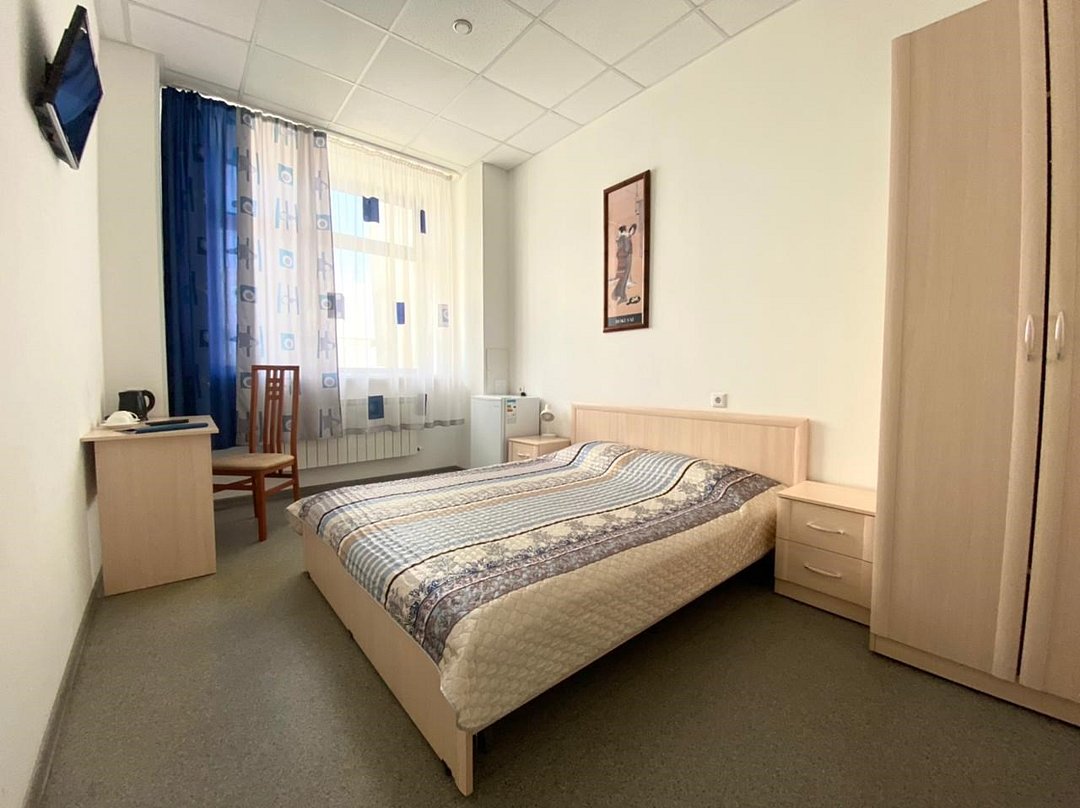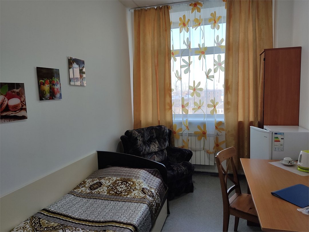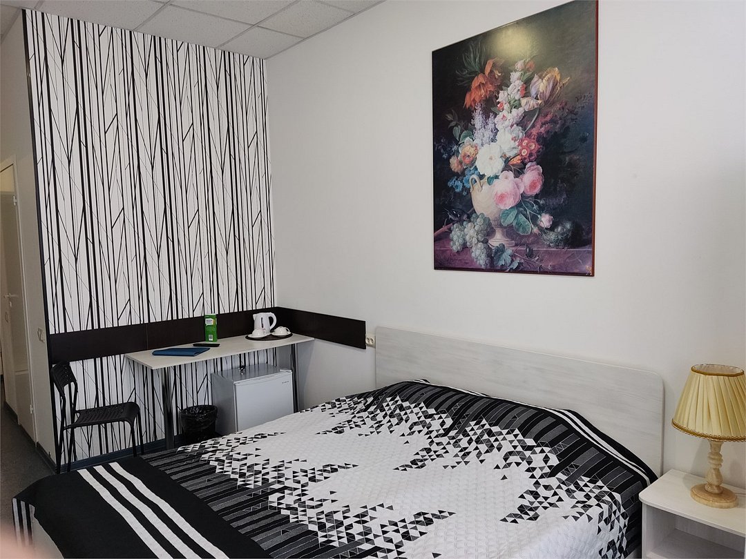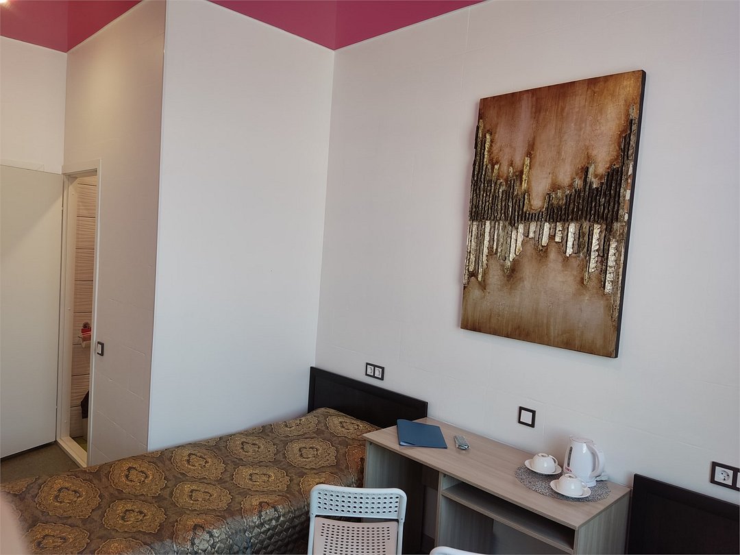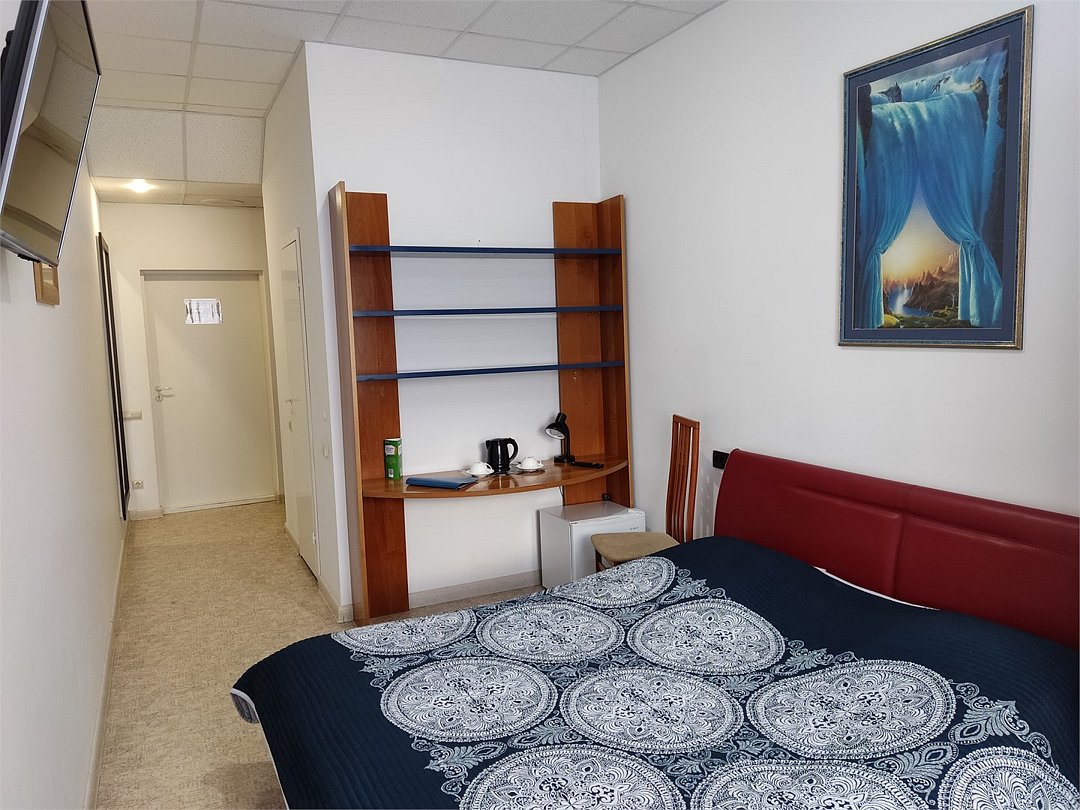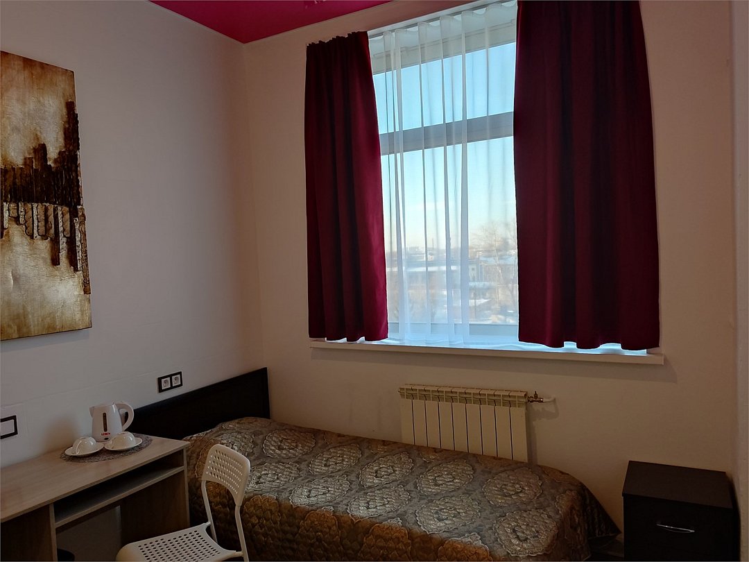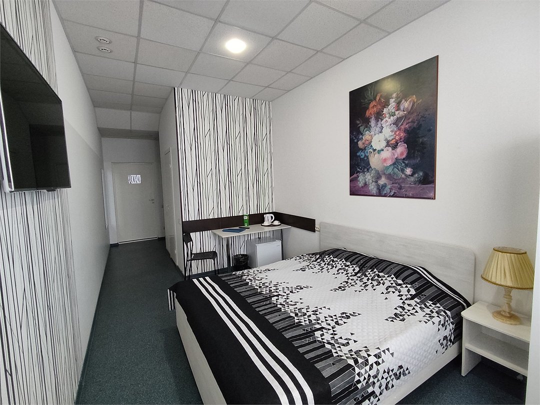 В номере кровать с ортопедическим матрасом, цифровое тв, телевизор с плоским экраном, мини-холодильник, настольная лампа, зеркало, письменный стол, стулья, тумбы, шкаф для одежды. Туалетные средства, банные полотенца. Душевая кабина вне номера. Вид на город Wi-Fi, интернет Есть гостиная зона. Так же Гости могут воспользоваться феном, гладильной доской, утюгом и услугами прачечной.Услуги и удобства
