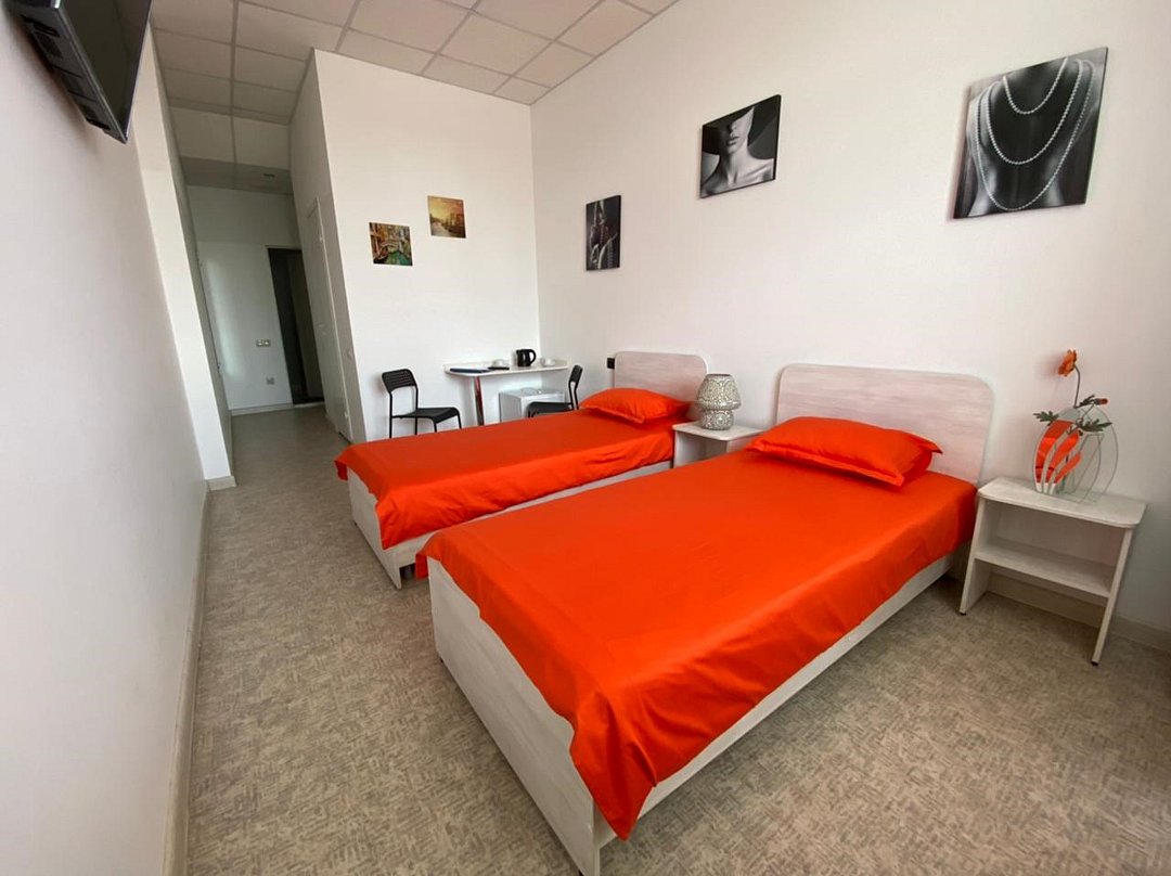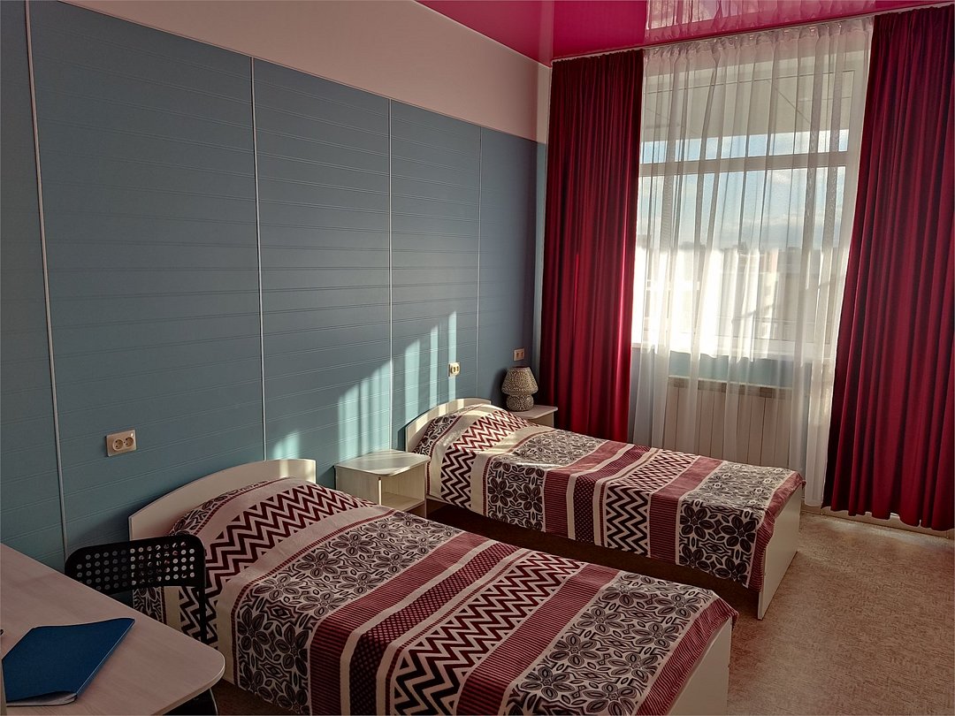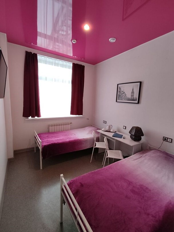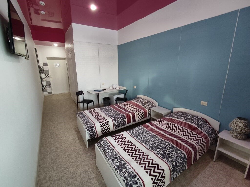 Wi-Fi, интернет, фен, утюг, банные полотенца, две односпальные кровати, гипоаллергенное белье, гладильная доска, ортопедический матрас, тумбы, стулья, шкаф для одежды, зеркало, комод, обслуживание номеров, стиральная машина, чайник, питьевая вода, гостиная зона, вид на город, кулер на этаже, общая ванная комната, высокие потолки, стол, туалетные средства, сушилка для белья, цифровое тв, телевизор с плоским экраном, мини-холодильникВ номере