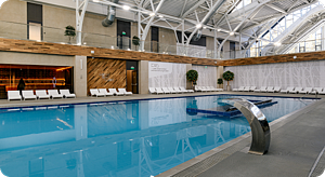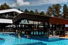 В распоряжении отдыхающих находятся три больших бассейна с подогреваемой артезианской водой общей площадью 935 квадратных метров: открытый, крытый взрослый и детский бассейны, а также splash-зона для развлечения детей.