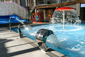 Тип бассейна: крытый бассейнТемпература в бассейне: 30 °CГлубина: 60 смРасположен в непосредственной близости от крытого бассейна и имеет глубину 0,6м. Температура воды круглогодично 30-31С. Площадь 70 м2. Вы сможете наблюдать за безопасным купанием ваших детей. Жилеты, рукава, круги — бесплатно для гостей Терм ЮГА.