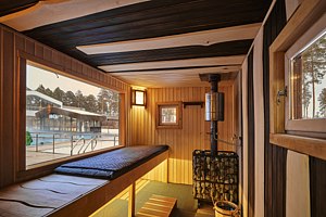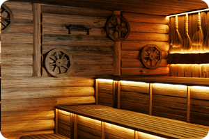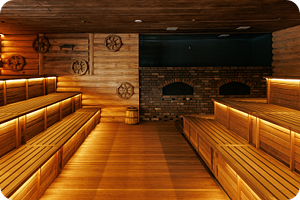Русская баня широко известна в самых отдаленных уголках мира. Культура парения на Руси всегда считалась атрибутом широкой русской души, синонимом здоровья и долголетия. Эта баня расположена рядом с уличным бассейном и купелью, в которой рекомендуется охладиться сразу после жарких парений. Является самой большой баней в комплексе. Оптимальная температура для парения 70-80С. Парения с вениками не разрешены.