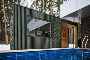 - русская баня расположена здесь же. Из нее после парений можно попасть прямо в купель и охладиться;