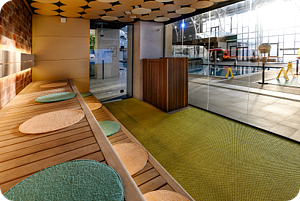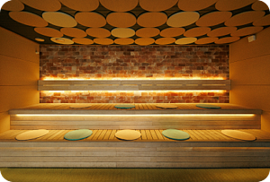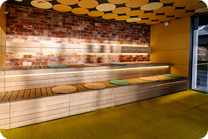 Дети хотят пробовать все, что делают взрослые. Поэтому для них предусмотрена детская баня–санариум. Это сертифицированное безопасное помещение с комфортной температурой, стеной из соляных кирпичей и большим телевизором только с добрыми мультфильмами для детей и их родителей. На полках предусмотрены сиденья и нескользящее покрытие на полу.