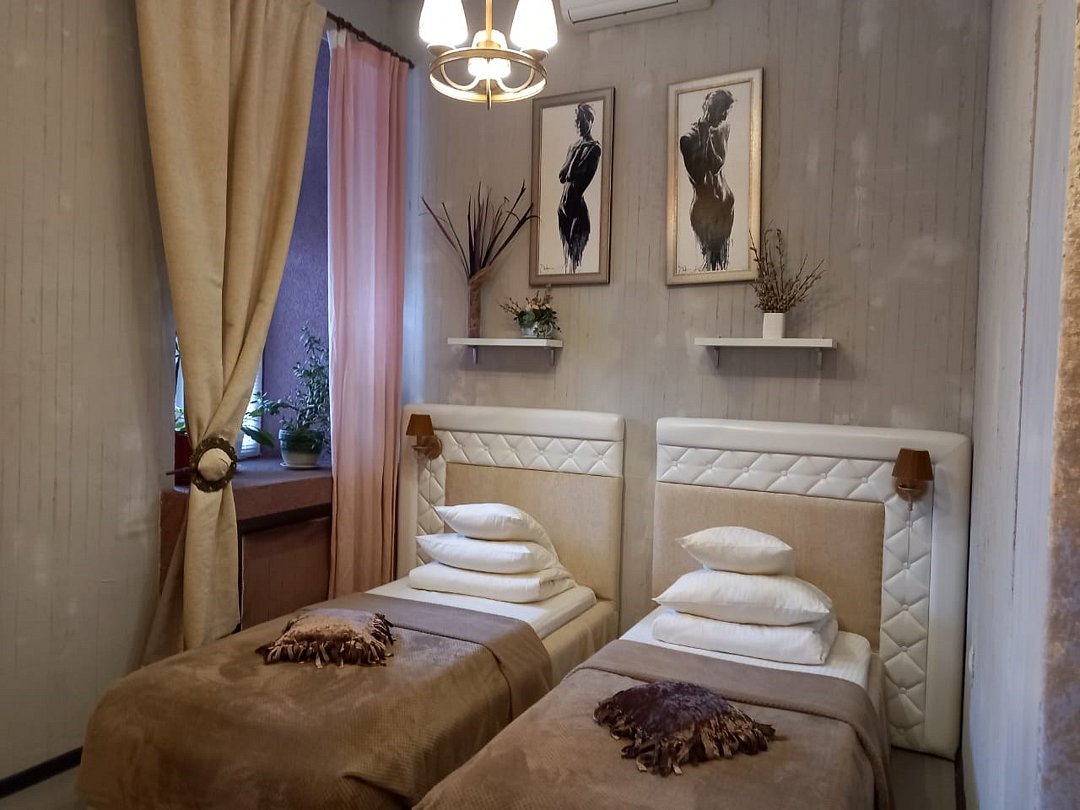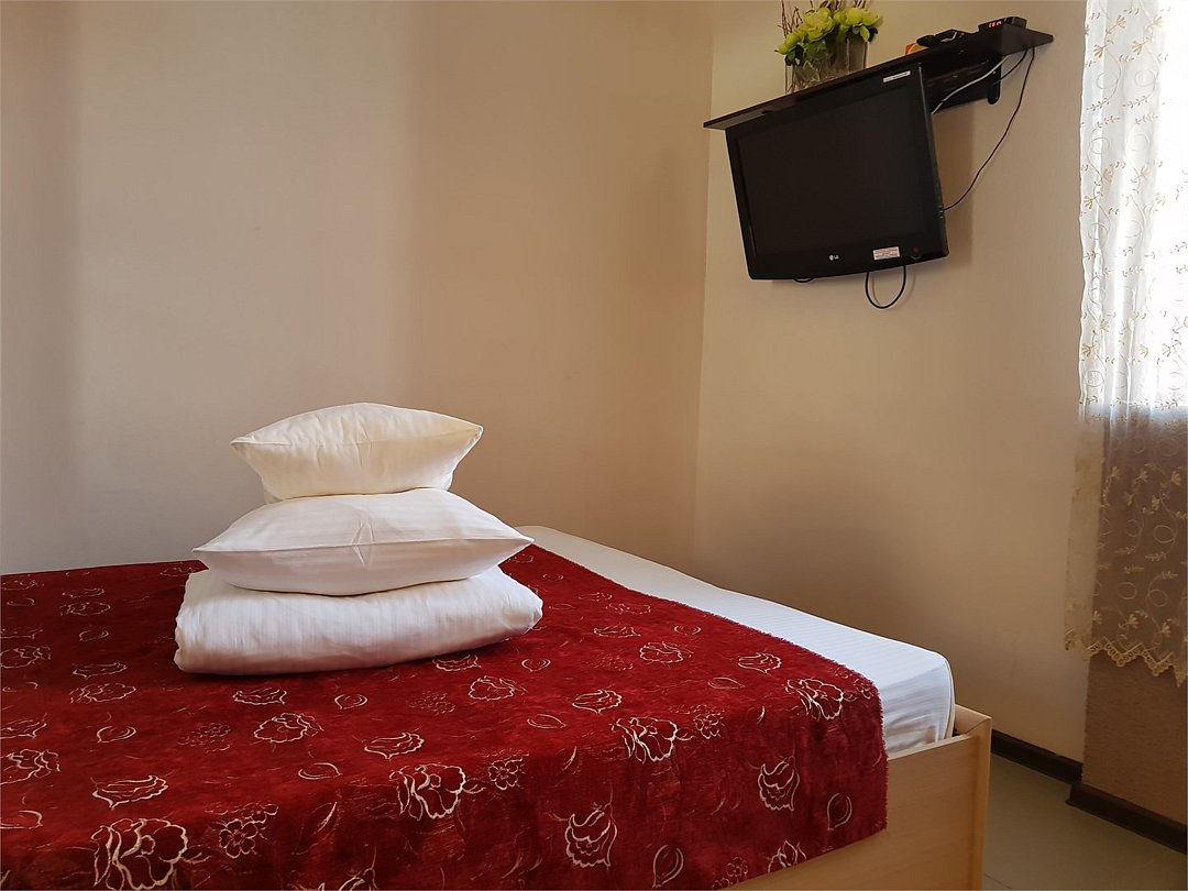 кабельное телевидение, холодильник, кондиционер, светильник, фен, вентилятор, будильник, радио, санузел, банные полотенца, тапочки, гигиенические средства, две полутораспальные кровати, стулья, шкаф для одежды, вешалки, ковер, чайный набор, набор посуды, обслуживание номеров, информационная карта, меню, чайник, раковина, косметическое зеркало, питьевая вода, отопление, душ, вид на город, плиточное покрытие, вид во двор, высокие потолки, стаканы, столовые приборы, стол, тумба, туалетные средства, сушилка для белья, диван-кровать, раскладной диван, внутренний телефон, телевизор с плоским экраном, можно с питомцамиВ номере