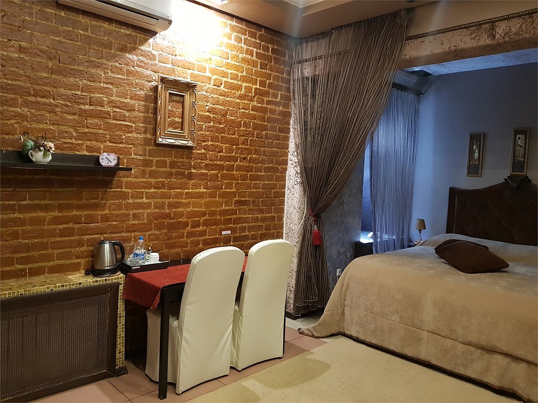 кабельное телевидение, светильник, настольные лампы, фен, будильник, радио, санузел, банные полотенца, тапочки, гигиенические средства, кровать «Queen size», шкаф для одежды, вешалки, письменный стол, зеркало, ковер, чайный набор, набор посуды, обслуживание номеров, информационная карта, меню, чайник, раковина, питьевая вода, отопление, душ, плиточное покрытие, вид во двор, высокие потолки, стаканы, столовые приборы, стул, стол, тумба, туалетные средства, внутренний телефон, телевизор с плоским экраном, можно с питомцамиВ номере