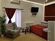 кабельное телевидение, холодильник, кондиционер, светильник, фен, вентилятор, будильник, радио, санузел, банные полотенца, тапочки, гигиенические средства, две полутораспальные кровати, стулья, шкаф для одежды, вешалки, ковер, чайный набор, набор посуды, обслуживание номеров, информационная карта, меню, чайник, раковина, косметическое зеркало, питьевая вода, отопление, душ, вид на город, плиточное покрытие, вид во двор, высокие потолки, стаканы, столовые приборы, стол, тумба, туалетные средства, сушилка для белья, диван-кровать, раскладной диван, внутренний телефон, телевизор с плоским экраном, можно с питомцамиВ гостиничном номере