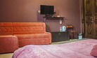 кабельное телевидение, кондиционер, светильник, настольные лампы, фен, будильник, санузел, халаты, банные полотенца, тапочки, гигиенические средства, кровать «Queen size», стулья, шкаф для одежды, вешалки, багажная тумба, зеркало, ковер, обслуживание номеров, информационная карта, меню, сейф, чайник, раковина, косметическое зеркало, питьевая вода, отопление, душ, плиточное покрытие, вид во двор, высокие потолки, стаканы, столовые приборы, стол, тумба, туалетные средства, сушилка для белья, диван-кровать, раскладной диван, внутренний телефон, телевизор с плоским экраном, шкаф-купе, можно с питомцамиВ номере
