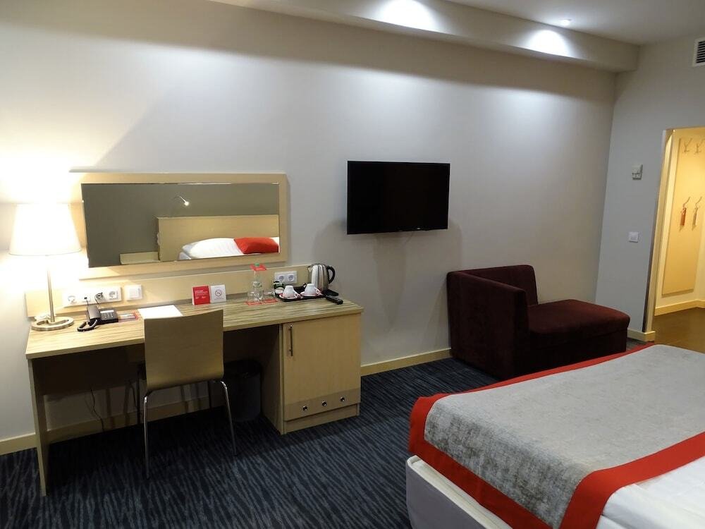 Чтобы вы могли отдохнуть после долгого дня, в номере есть телевизор и халат. Оснащение зависит от выбранной категории номера.
