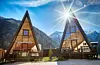 Очень комфортабельные коттеджи в стиле A-Frame на трёх уровнях, для комфортного проживания 6 человек (8 мест с диваном), построенные по эксклюзивному проекту с комнатой кроватью на 3-м этаже.