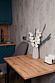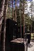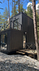 Домик площадью 30 м² рассчитан на размещение до четырех гостей. На первом этаже — уютная гостиная с раскладным диваном, оборудованная кухонная зона и санузел. На втором этаже — спальня и терраса с живописным видом на лес и горы.