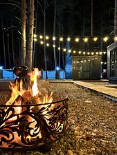 Двухэтажные домики с уютными спальнями и зонами для отдыха спроектированы с заботой о деталях, чтобы обеспечить максимальное удобство и расслабление. Современная техника — от кофемашины и микроволновки до умной колонки «Алиса» — создаёт атмосферу домашнего уюта, а просторные террасы и обогреватели в комнатах позволяют наслаждаться отдыхом круглый год.