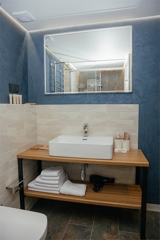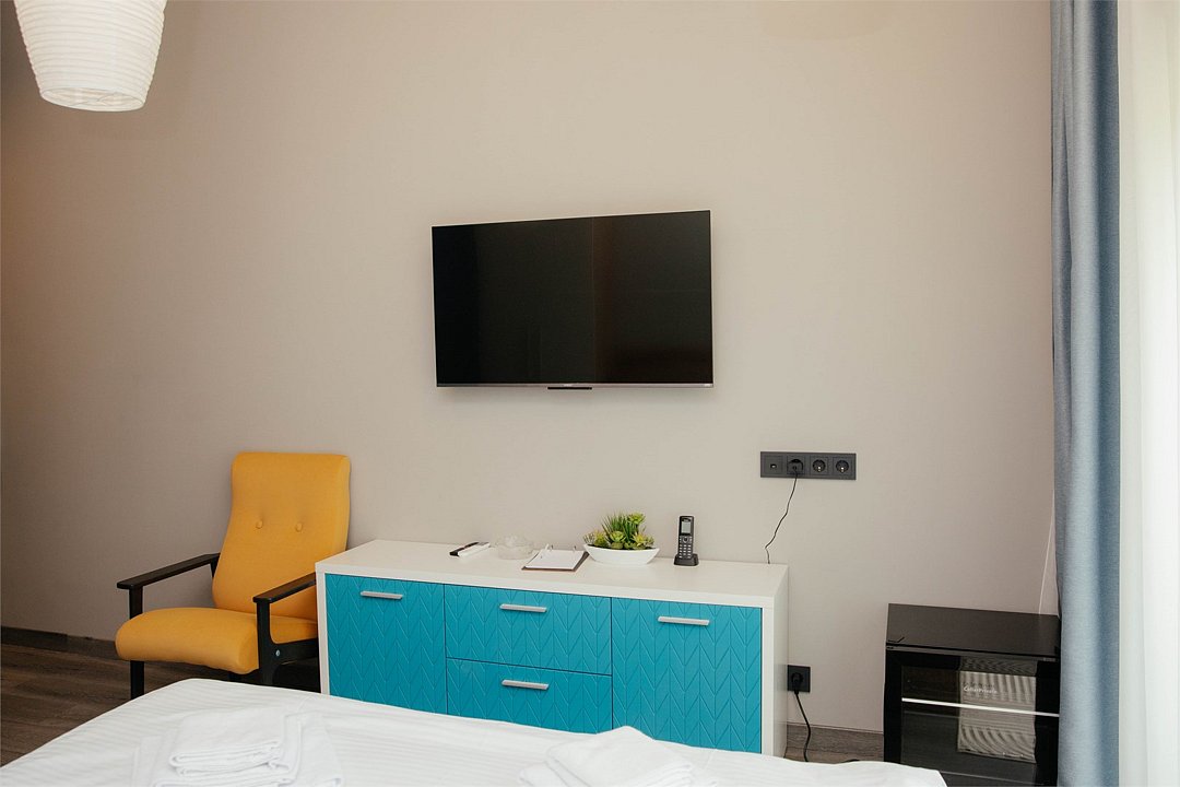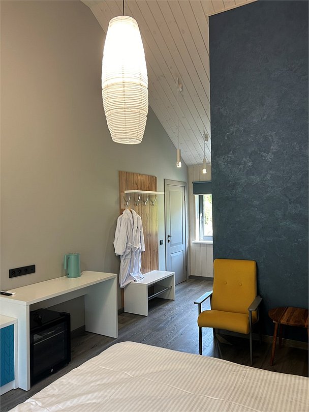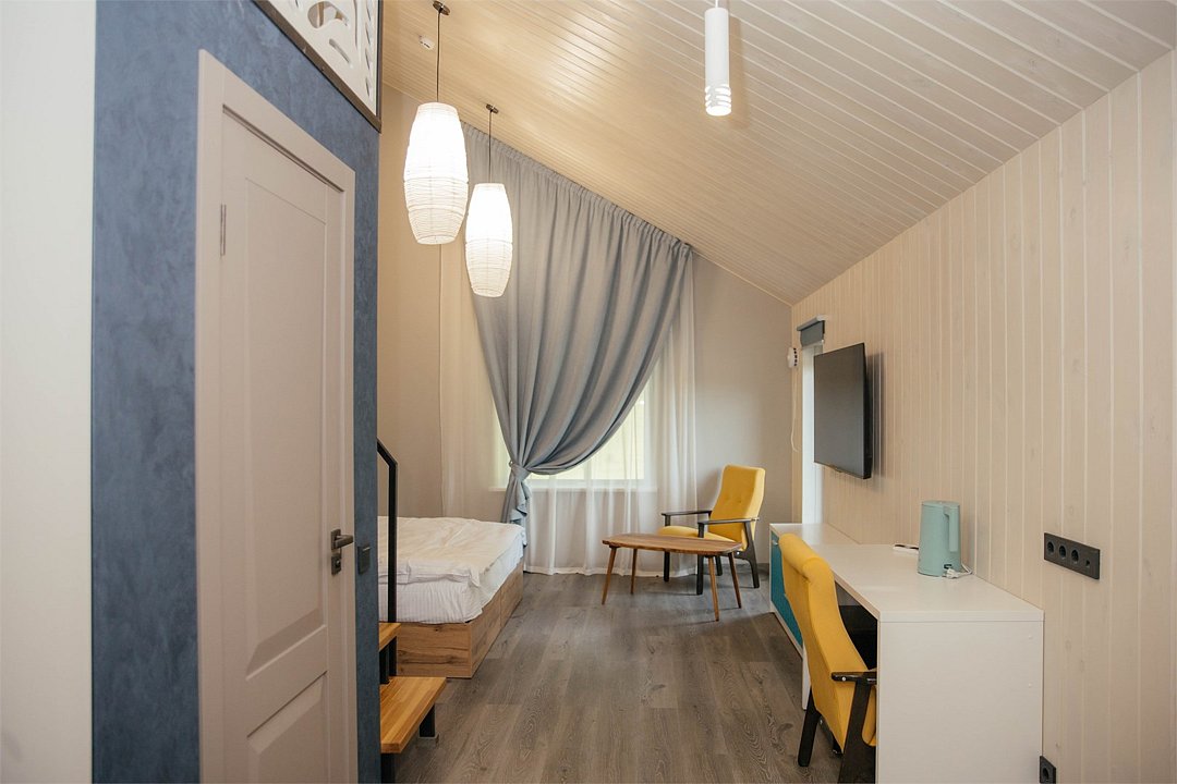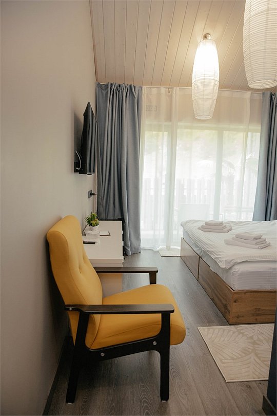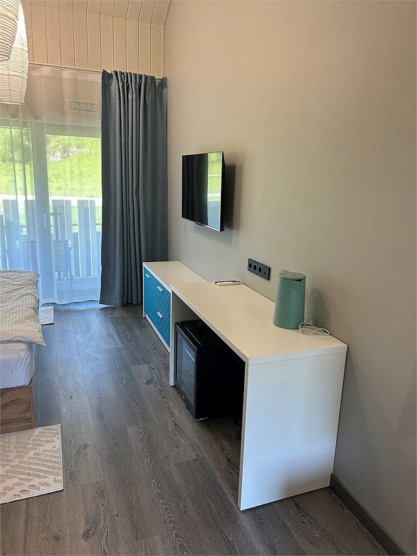 Просторный комфортный номер с панорамными видами. Идеальный выбор для тех, кто не любит стесненность и ценит удобство. Номер с увеличенной площадью и всем, что нужно для отдыха или работы, оснащен необходимым оборудованием для отдыха малоподвижной категории граждан. Организация пространства ✓Площадь: 21 м². ✓Варианты размещения: • 1 двуспальная кровать квин-сайз (180×200 см) или 2 односпальные кровати (по запросу); • детская кроватка, ванночка, горшок, ступеньки предоставляются по запросу гостя. ✓Дизайн: скандинавский стиль. ✓В стоимость номера включены*: • завтрак по комплексному меню (подается в лобби-баре с 08:00 до 11:00, можно заказать завтрак в номер); • доступ к бассейну (по графику работы); • охраняемая парковка (1 место на номер). *Отказ от использования услуг не является основанием для пересчета стоимости проживания. Оснащение номера (список ниже): ✓Электроника: • цифровое телевидение (смарт-ТВ); • высокоскоростной вай-фай; • система кондиционирования; • электронный сейф; • фен; • утюг. ✓Удобства: • мини-бар (холодильник с напитками); • чайная станция с набором чая/кофе; • письменный стол для работы; • туалетные принадлежности премиум-класса. ✓Безопасность: • противопожарная сигнализация; • круглосуточное видеонаблюдение на территории; • охраняется Росгвардией. ✓Почему стоит выбрать? • Больше пространства – удобно для отдыха или работы. • Доступная среда – оборудован всем необходимым для малоподвижных категорий граждан. • Вид из окна – наслаждайтесь живописными пейзажами.Услуги и удобства