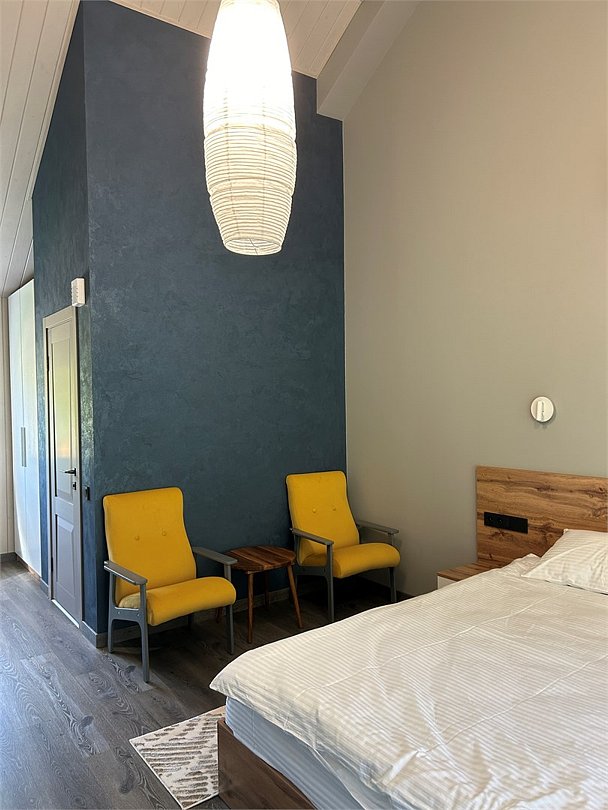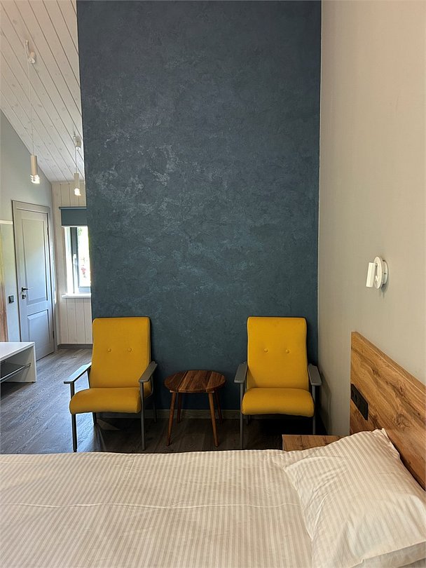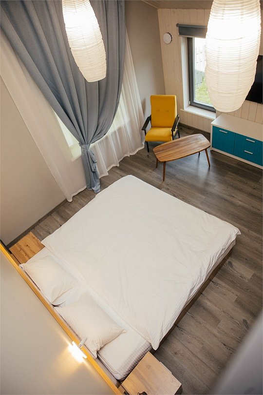 Большой двухуровневый номер для комфортного семейного отдыха или отдыха компанией, из окон – панорамный вид. Идеальное решение для отдыха семьи до пяти человек в Горном Алтае! Организация пространства ✓Площадь: 35 м². ✓Варианты размещения: • 2 двуспальные кровати квин-сайз (180×200 см) и диван-кровать* или 1 двуспальная кровать квин-сайз (180×200 см) и 2 односпальные кровати (по запросу) и диван-кровать*; • детская кроватка, ванночка, горшок, ступеньки предоставляются по запросу гостя. ✓Дизайн: скандинавский стиль. ✓Особенность: панорамные окна с видом на живописные окрестности. *Обратите внимание: дополнительное спальное место в вашем номере – это раскладной диван-кровать. В разложенном виде он образует комфортное ортопедическое спальное место на уровне пола. ✓В стоимость номера включены*: • завтрак по комплексному меню (подается в лобби-баре с 08:00 до 11:00, можно заказать завтрак в номер); • доступ к бассейну (по графику работы); • охраняемая парковка (1 место на номер). *Отказ от использования услуг не является основанием для пересчета стоимости проживания. Оснащение номера (список ниже): ✓Электроника: • цифровое телевидение смарт-ТВ; • высокоскоростной вай-фай; • система кондиционирования; • электронный сейф; • фен; • утюг. ✓Удобства: • мини-бар (холодильник с напитками); • чайная станция с набором чая/кофе; • письменный стол для работы; • туалетные принадлежности премиум-класса. ✓Безопасность: • противопожарная сигнализация; • круглосуточное видеонаблюдение на территории; • охраняется Росгвардией. ✓Почему стоит выбрать? • Больше пространства – удобно для отдыха или работы. • Вид из окна – наслаждайтесь живописными пейзажами.Услуги и удобства