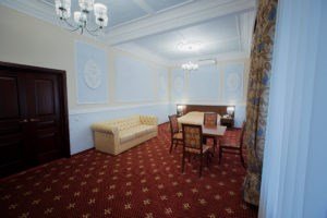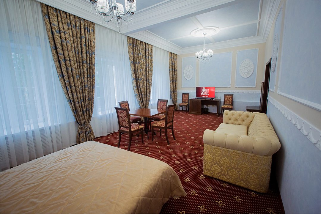 Общей площадью 70 кв.м. с кроватью размера «king-size» и диваном-кроватью. Номер состоит из двух комнат и вмещает до 4 одновременно проживающих постояльцев.Услуги и удобства