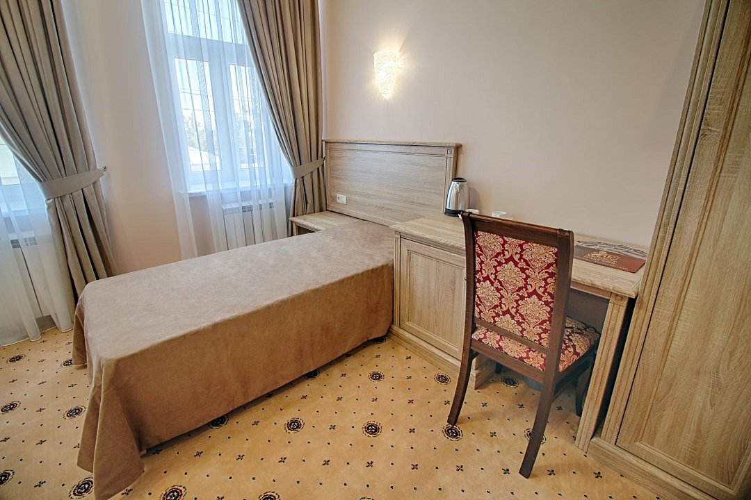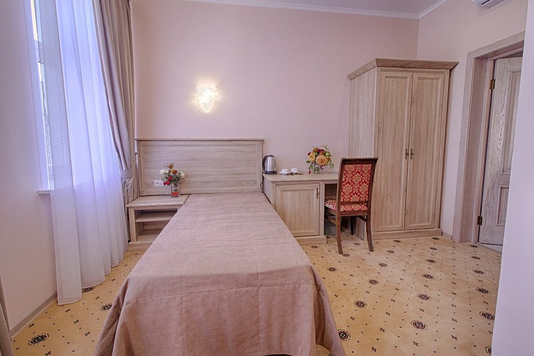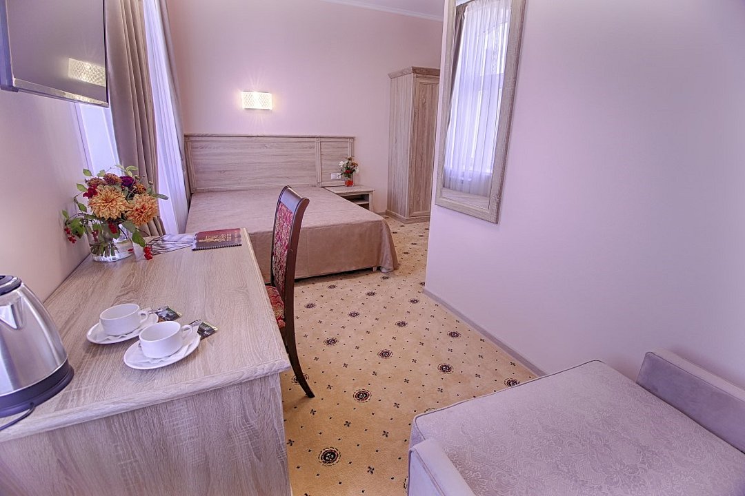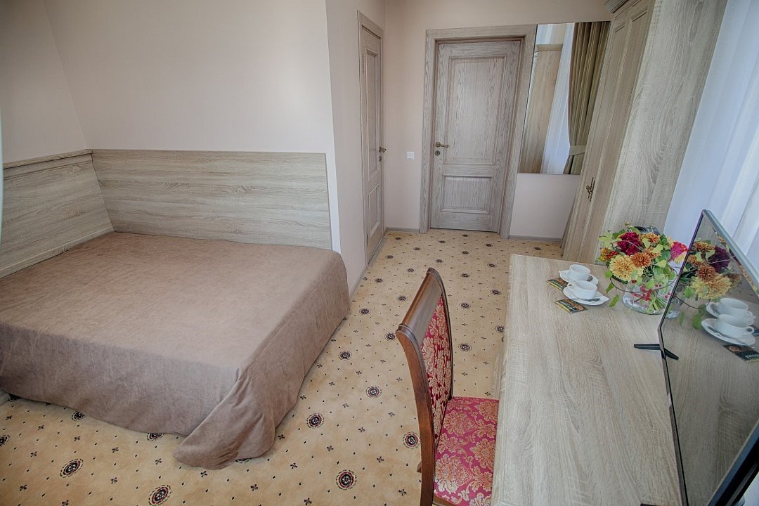 Звукоизолированный двухместный номер с 1 кроватью, кондиционером и телевизором со спутниковыми каналами.Услуги и удобства