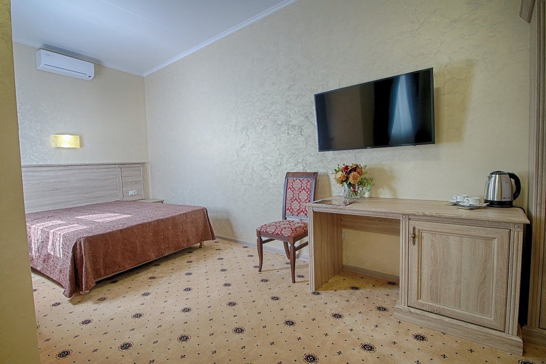 телевизор, холодильник, кондиционер, фен, халаты, тапочки, двуспальная кровать, шкаф для одежды, туалетные средства, рабочий стол, без питомцевВ номере