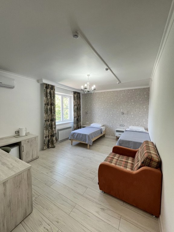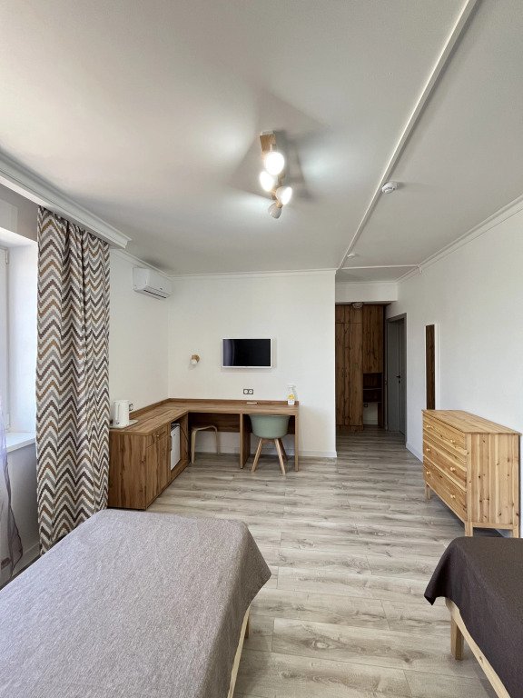 В номере вы найдёте телевизор. Оснащение зависит от выбранной категории номера.